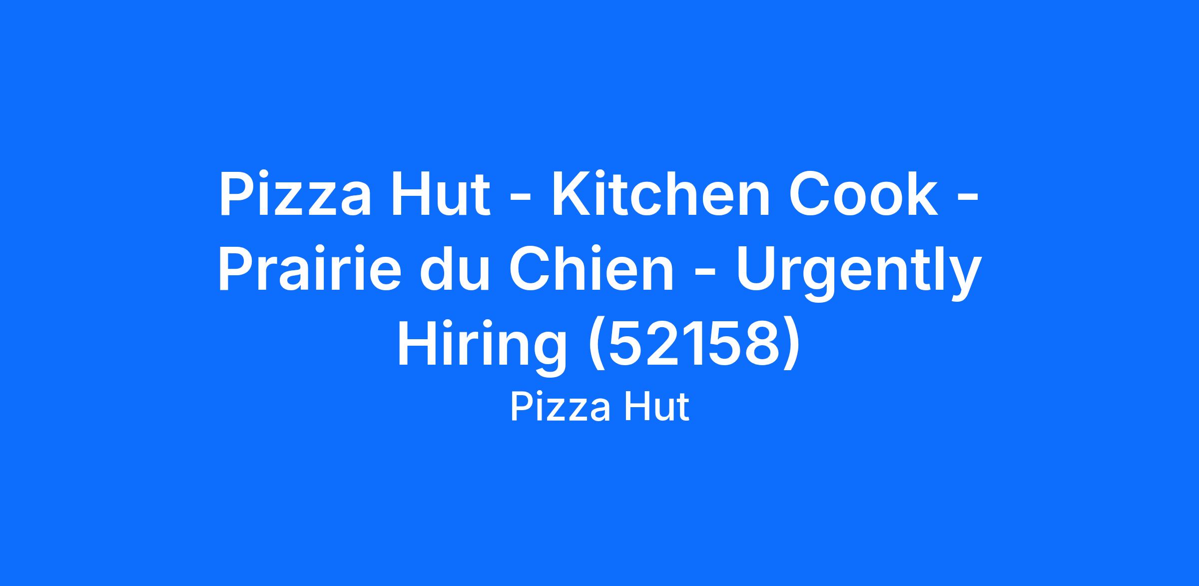 Pizza Hut - Kitchen Cook - Prairie du Chien - Urgently Hiring (52158)