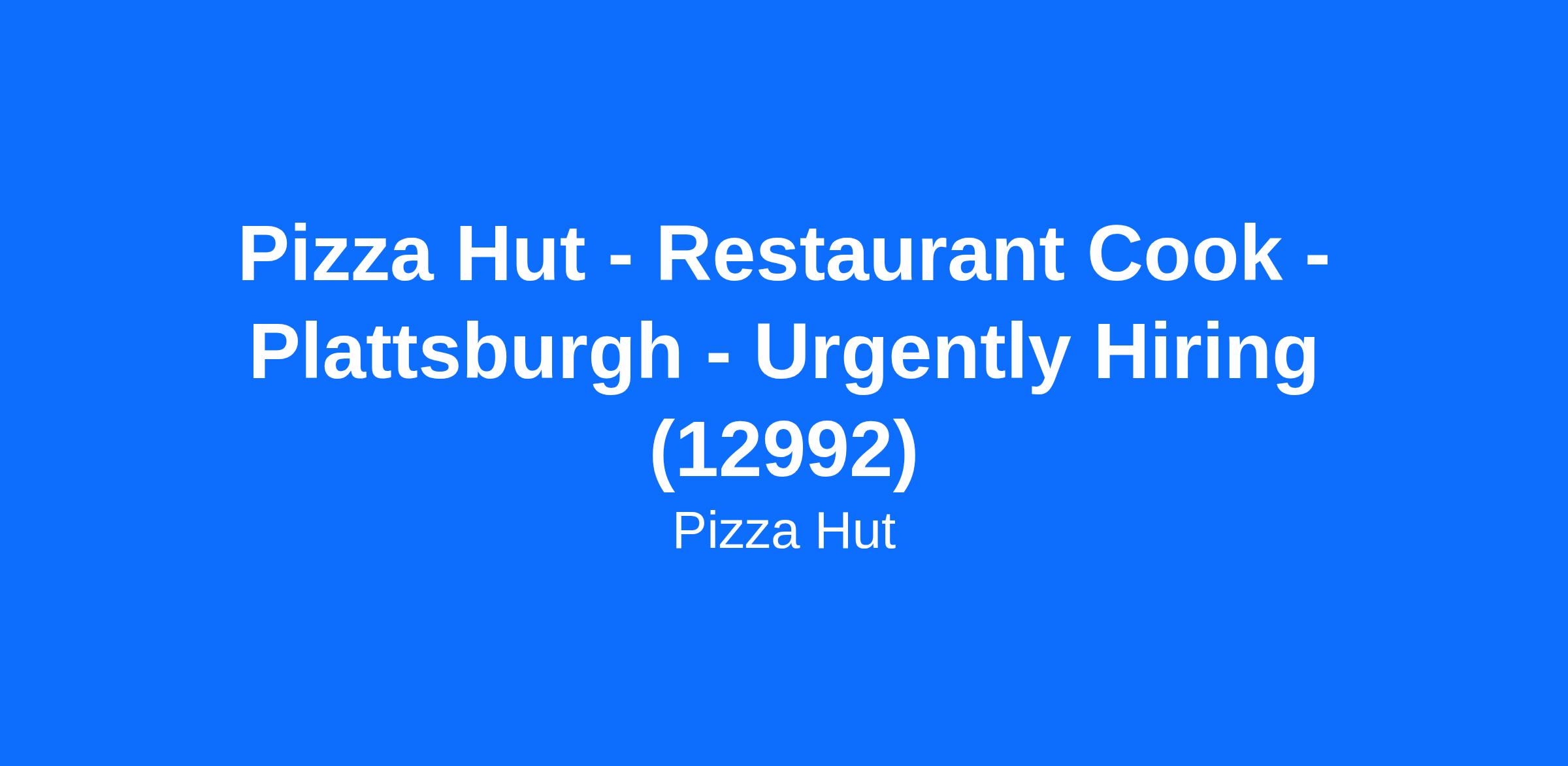 Pizza Hut - Restaurant Cook - Plattsburgh - Urgently Hiring (12992)
