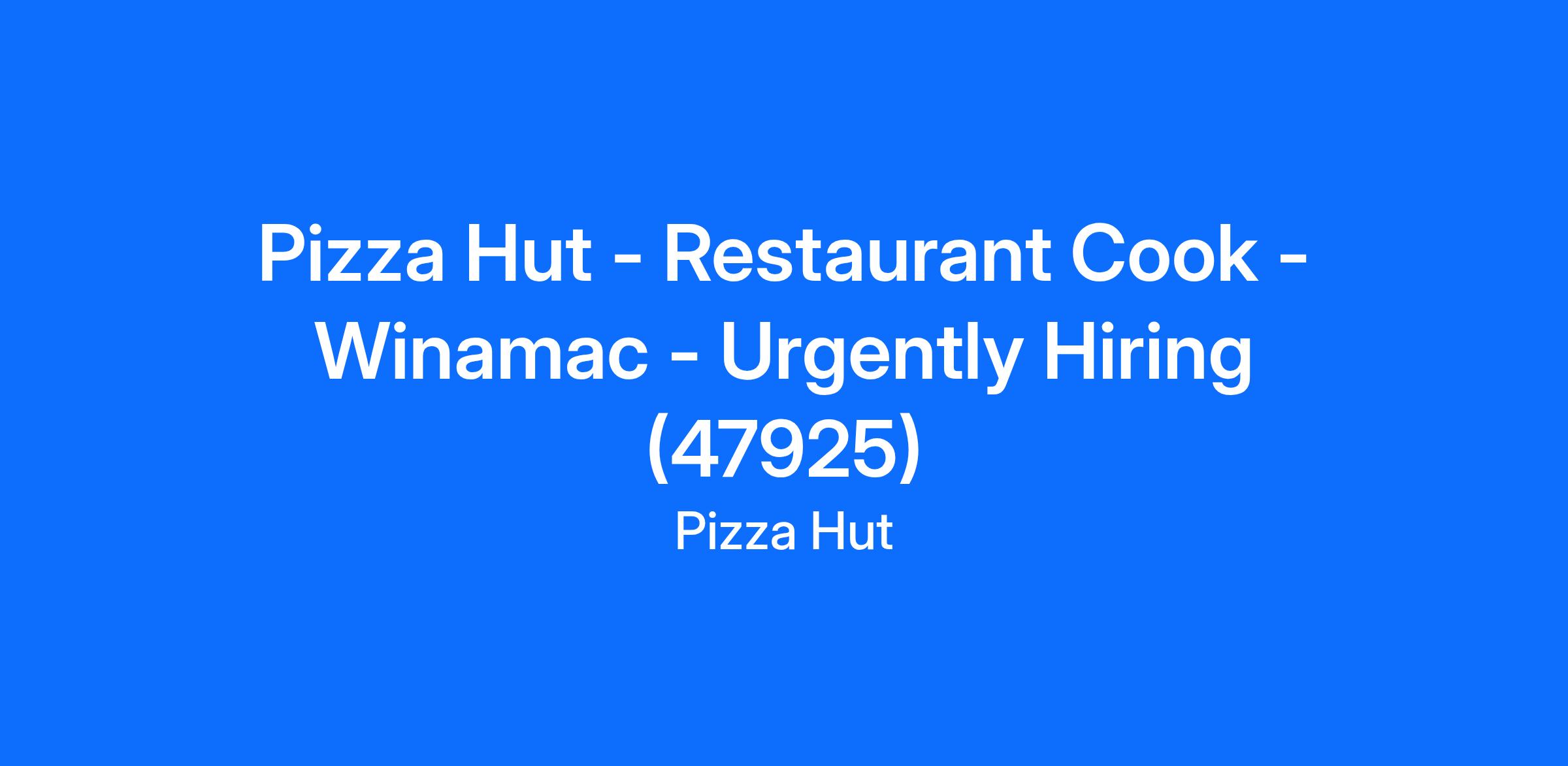 Pizza Hut - Restaurant Cook - Winamac - Urgently Hiring (47925)