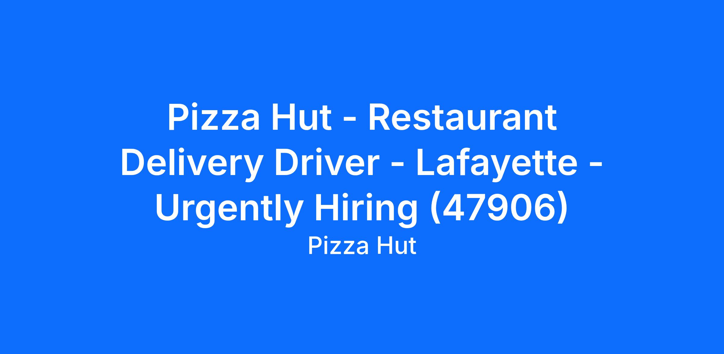 Pizza Hut - Restaurant Delivery Driver - Lafayette - Urgently Hiring (47906)