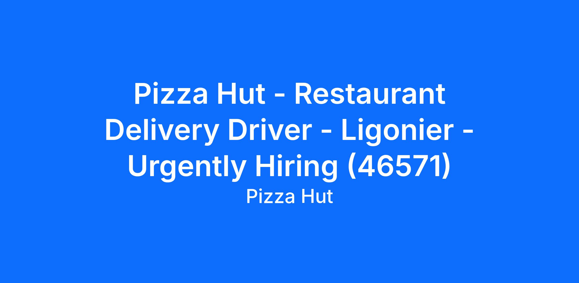 Pizza Hut - Ligonier is currently hiring qualified full time or part time Restaurant Delivery Drivers at our location in Ligonier, IN. As a Restaurant Delivery Driver, your responsibility is to safely and efficiently deliver food orders from our store location to our customers.
