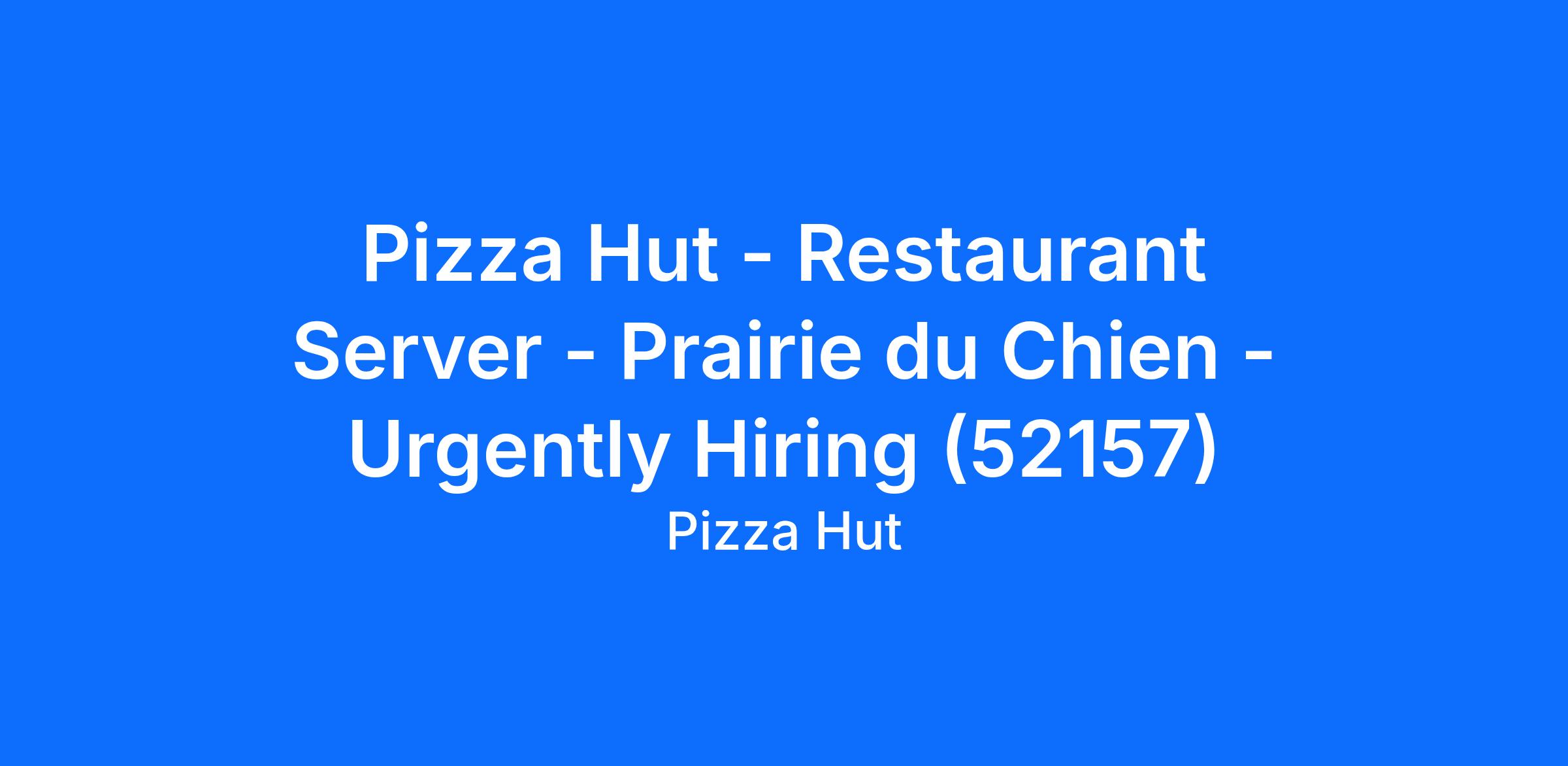 Pizza Hut - Restaurant Server - Prairie du Chien - Urgently Hiring (52157)