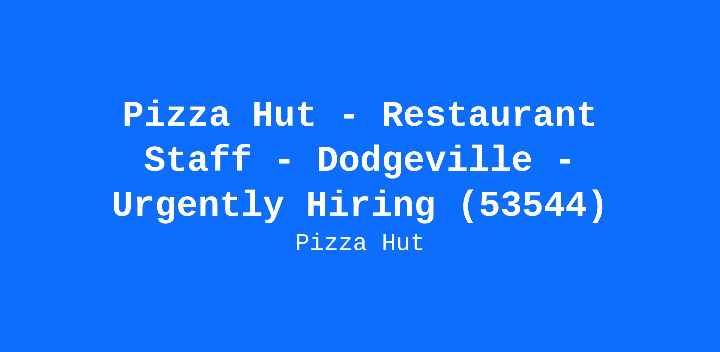 Pizza Hut - Restaurant Staff - Dodgeville - Urgently Hiring (53544)