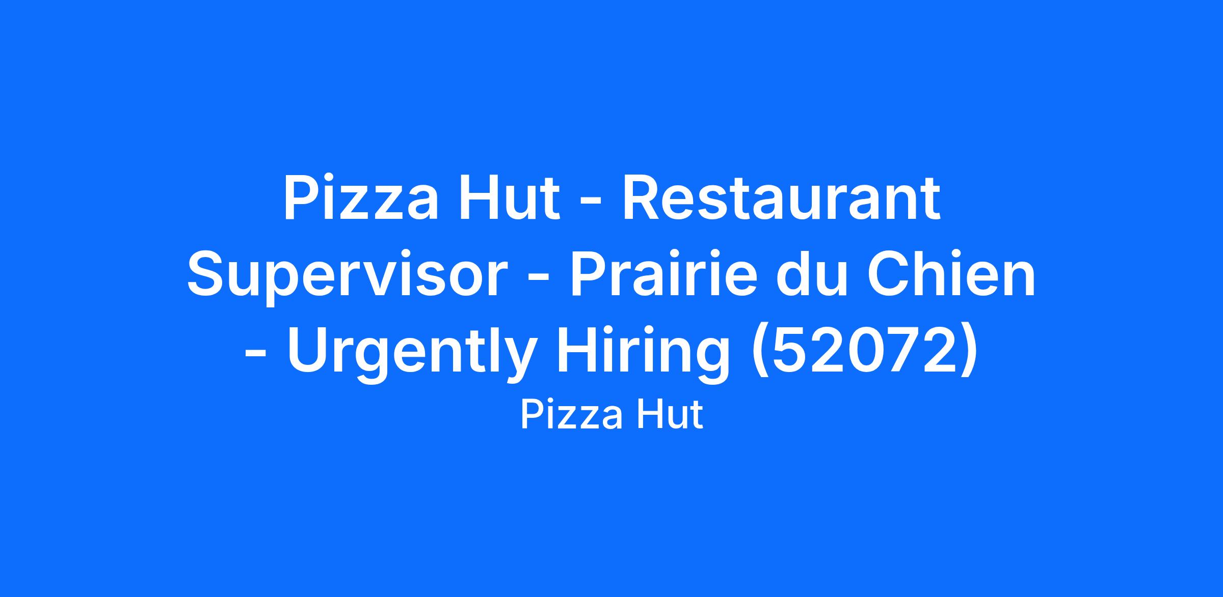 Pizza Hut - Restaurant Supervisor - Prairie du Chien - Urgently Hiring (52072)