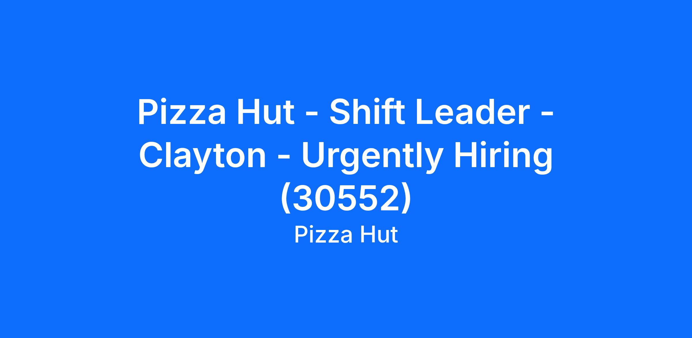 Pizza Hut - Shift Leader - Clayton - Urgently Hiring (30552)