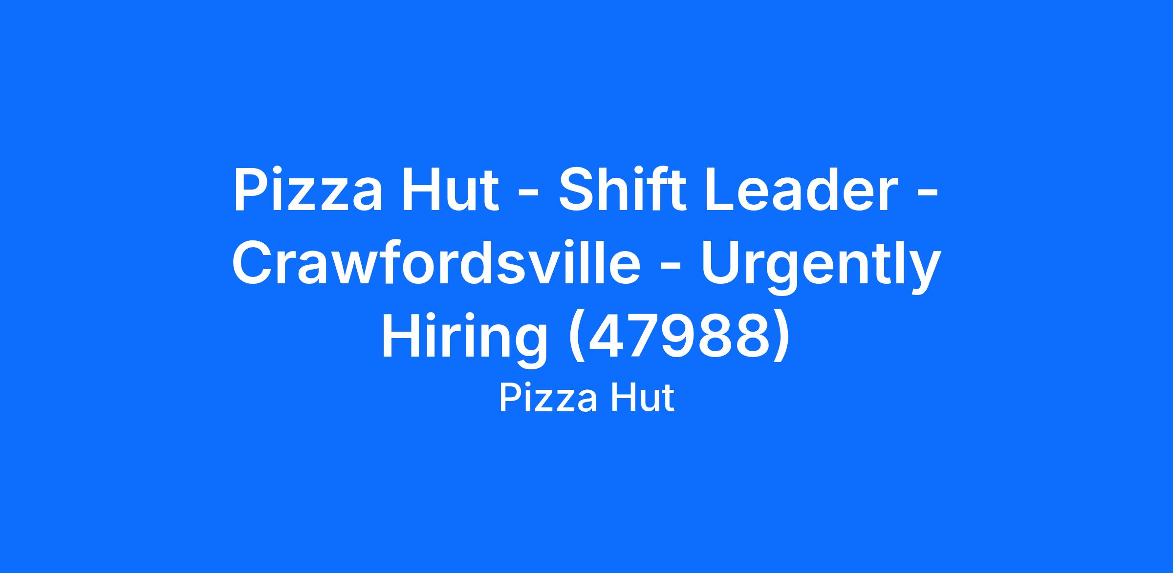 Pizza Hut - Shift Leader - Crawfordsville - Urgently Hiring (47988)
