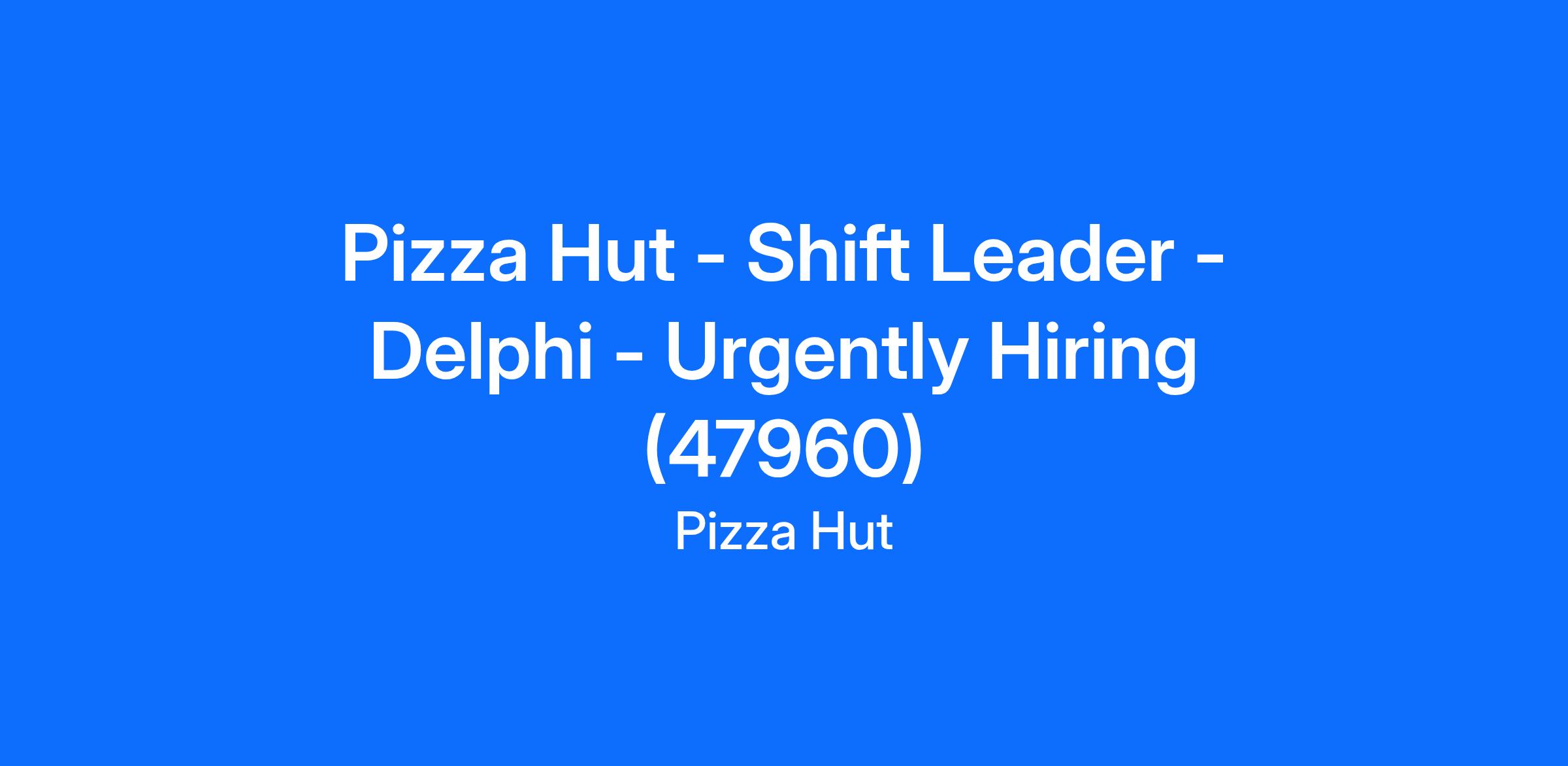 Pizza Hut - Shift Leader - Delphi - Urgently Hiring (47960)