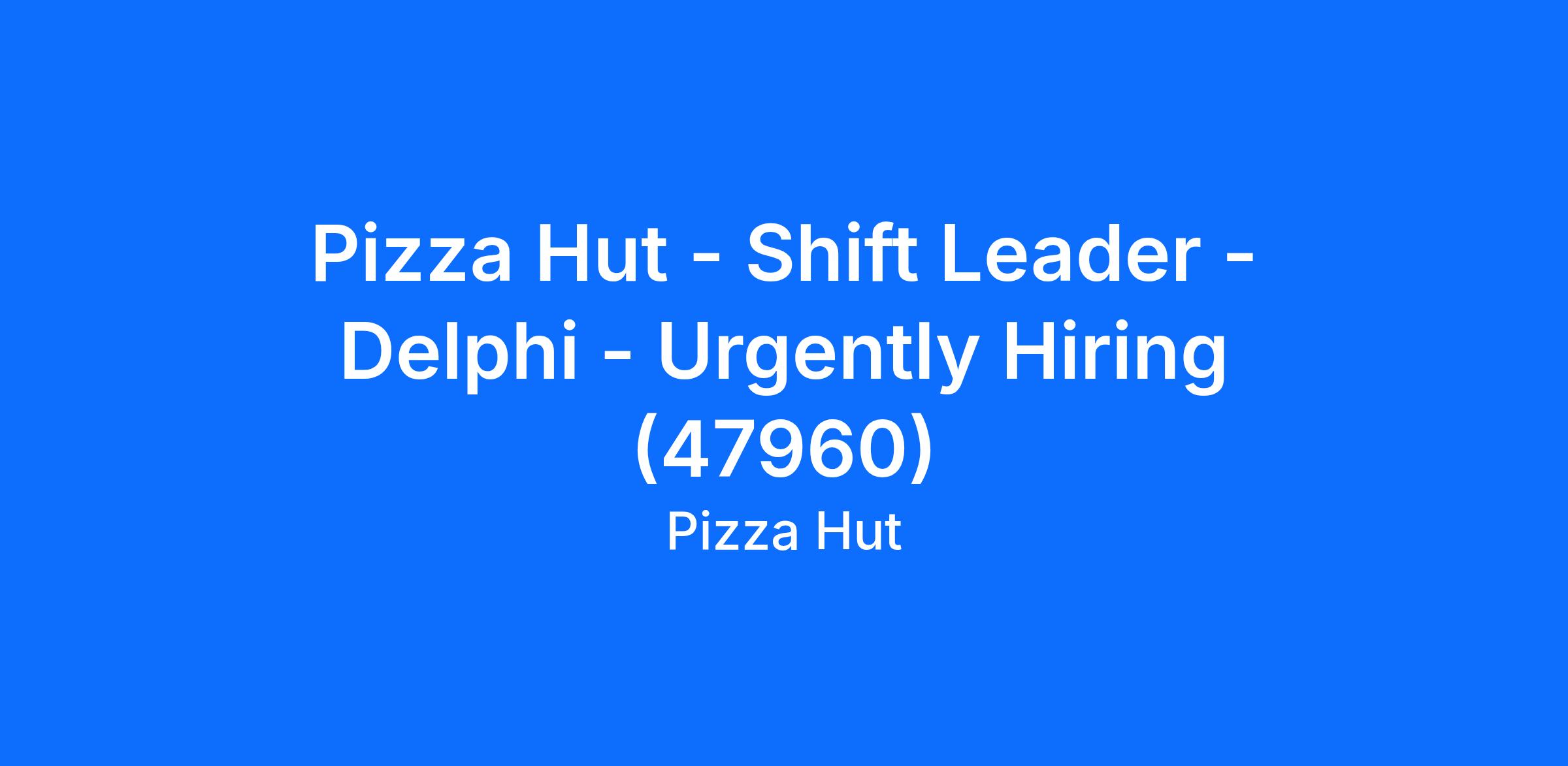 Pizza Hut - Shift Leader - Delphi - Urgently Hiring (47960)