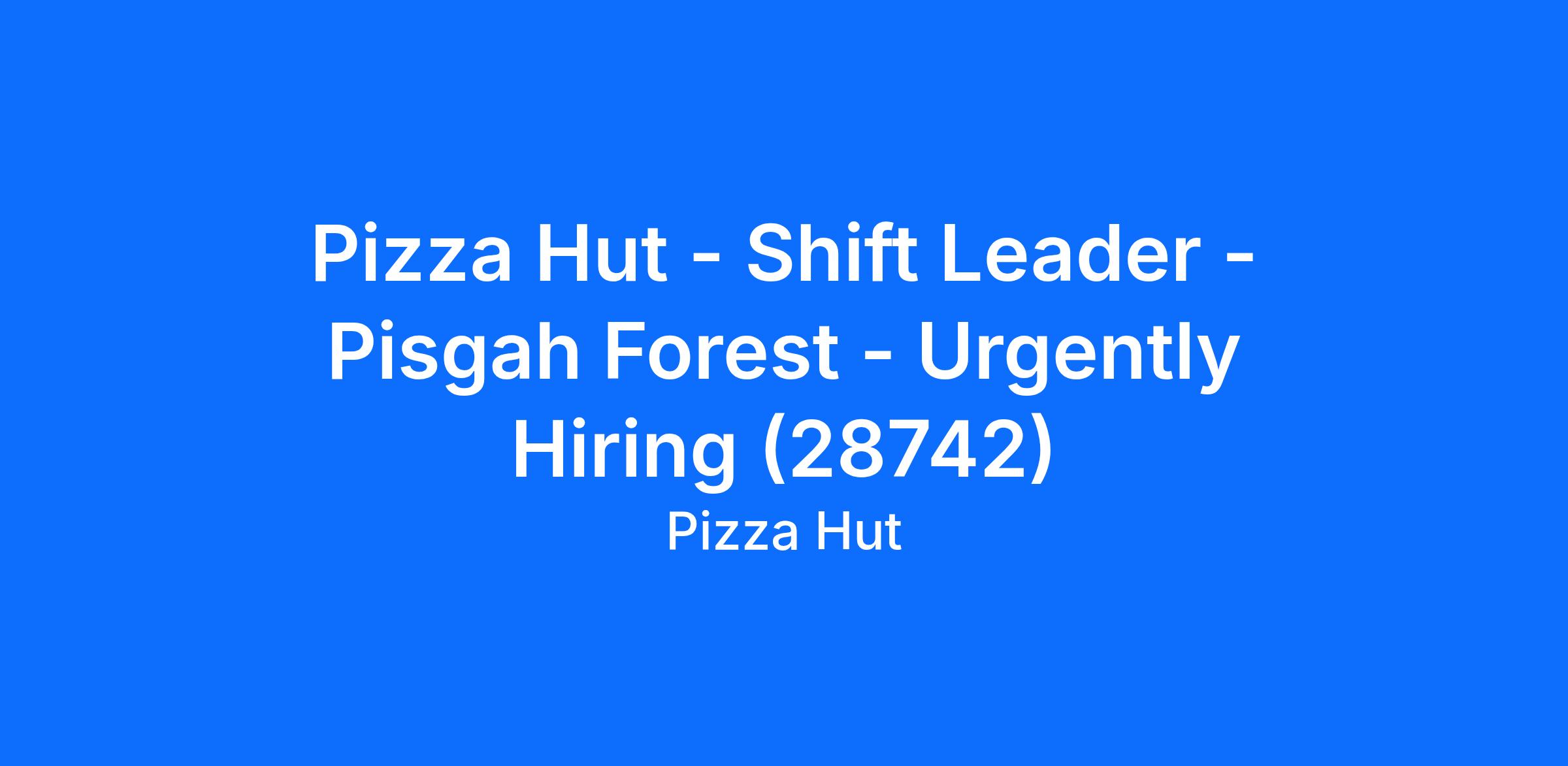 Pizza Hut - Shift Leader - Pisgah Forest - Urgently Hiring (28742)