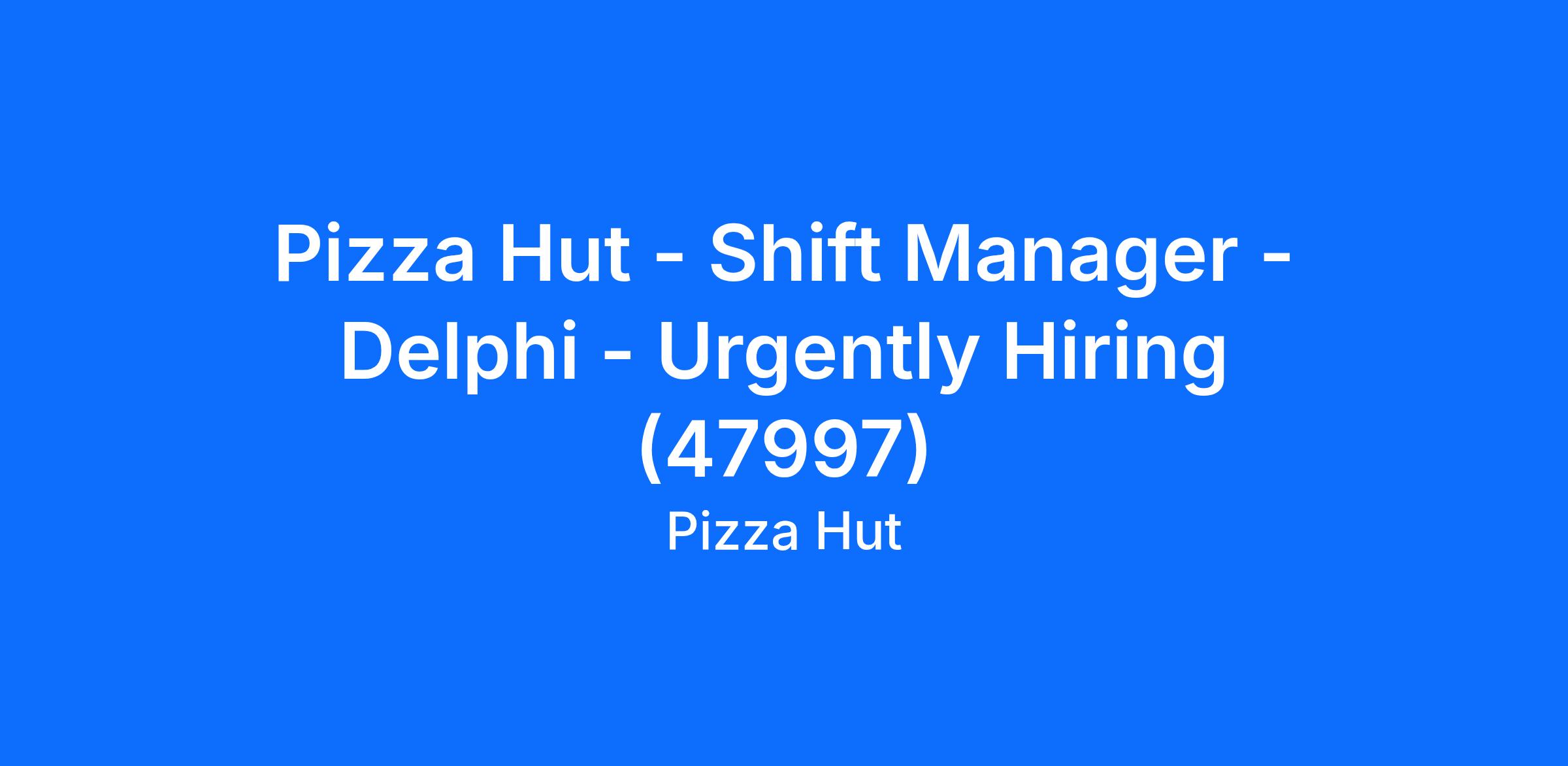 Pizza Hut - Shift Manager - Delphi - Urgently Hiring (47997)