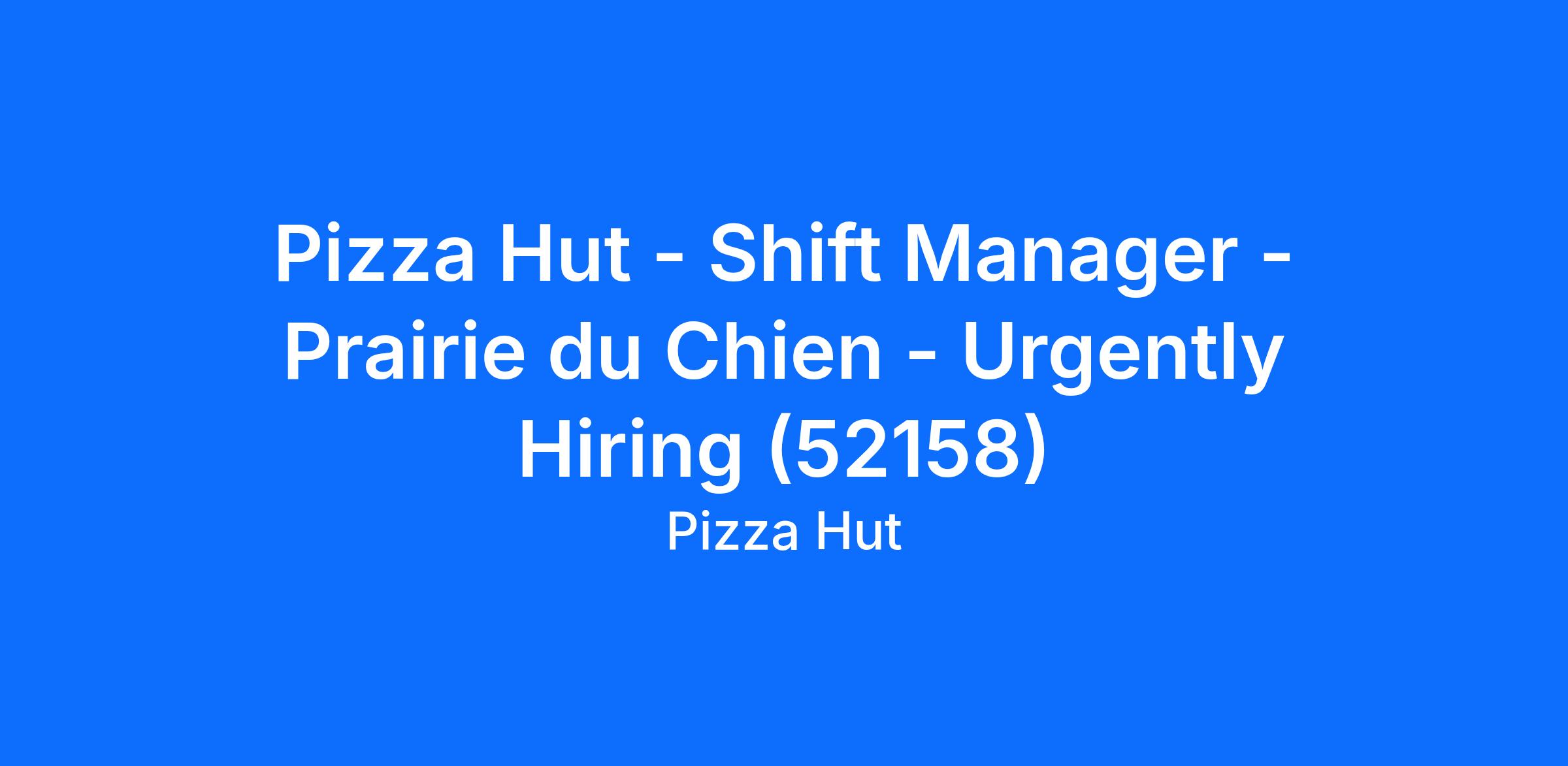 Pizza Hut - Shift Manager - Prairie du Chien - Urgently Hiring (52158)