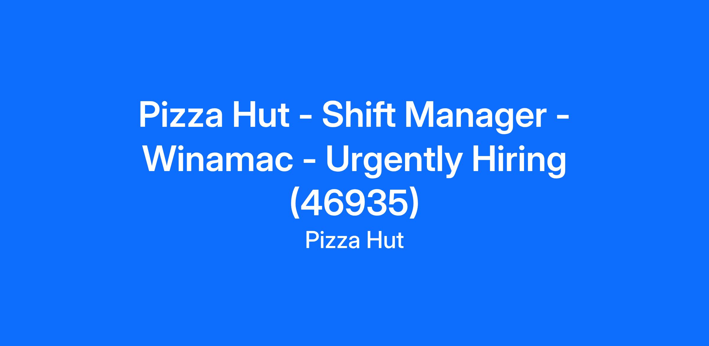 Pizza Hut - Shift Manager - Winamac - Urgently Hiring (46935)