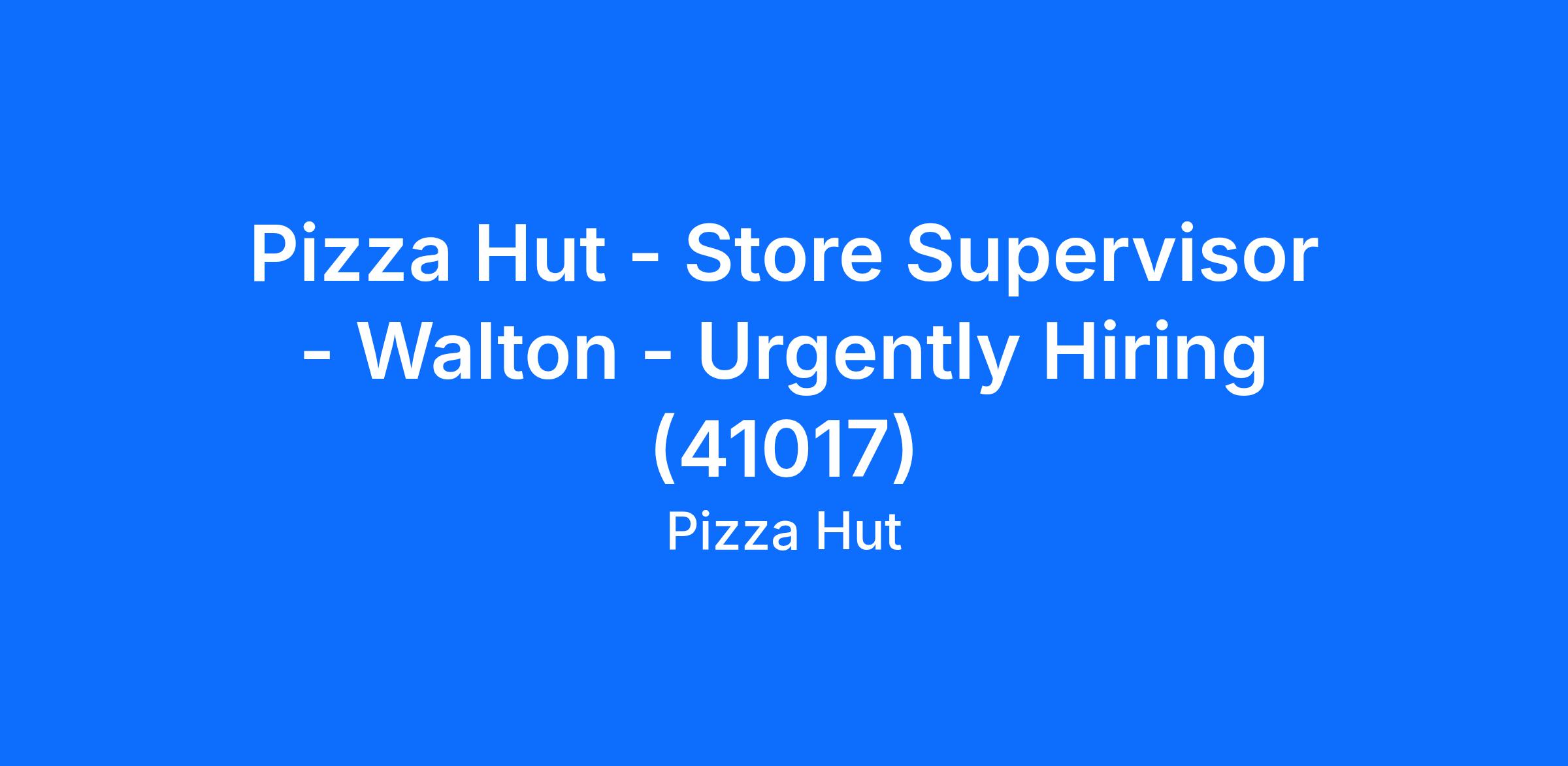 Pizza Hut - Store Supervisor - Walton - Urgently Hiring (41017)
