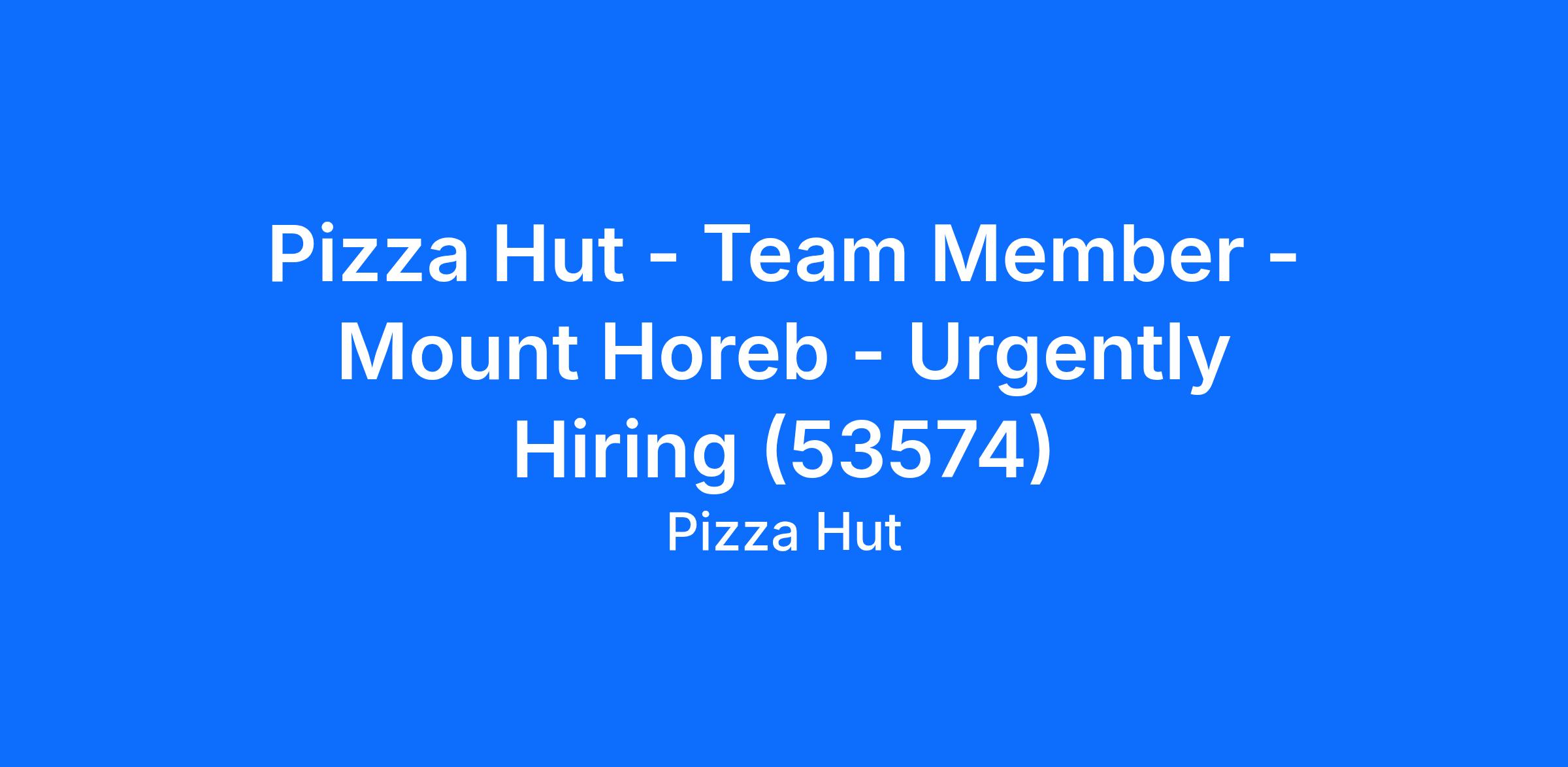 Pizza Hut - Team Member - Mount Horeb - Urgently Hiring (53574)