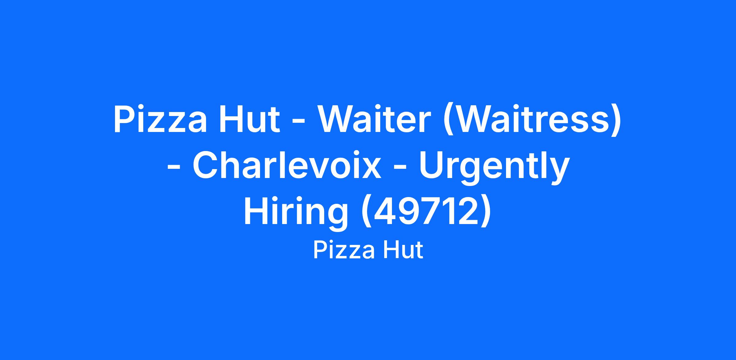 Pizza Hut - Waiter (Waitress) - Charlevoix - Urgently Hiring (49712)