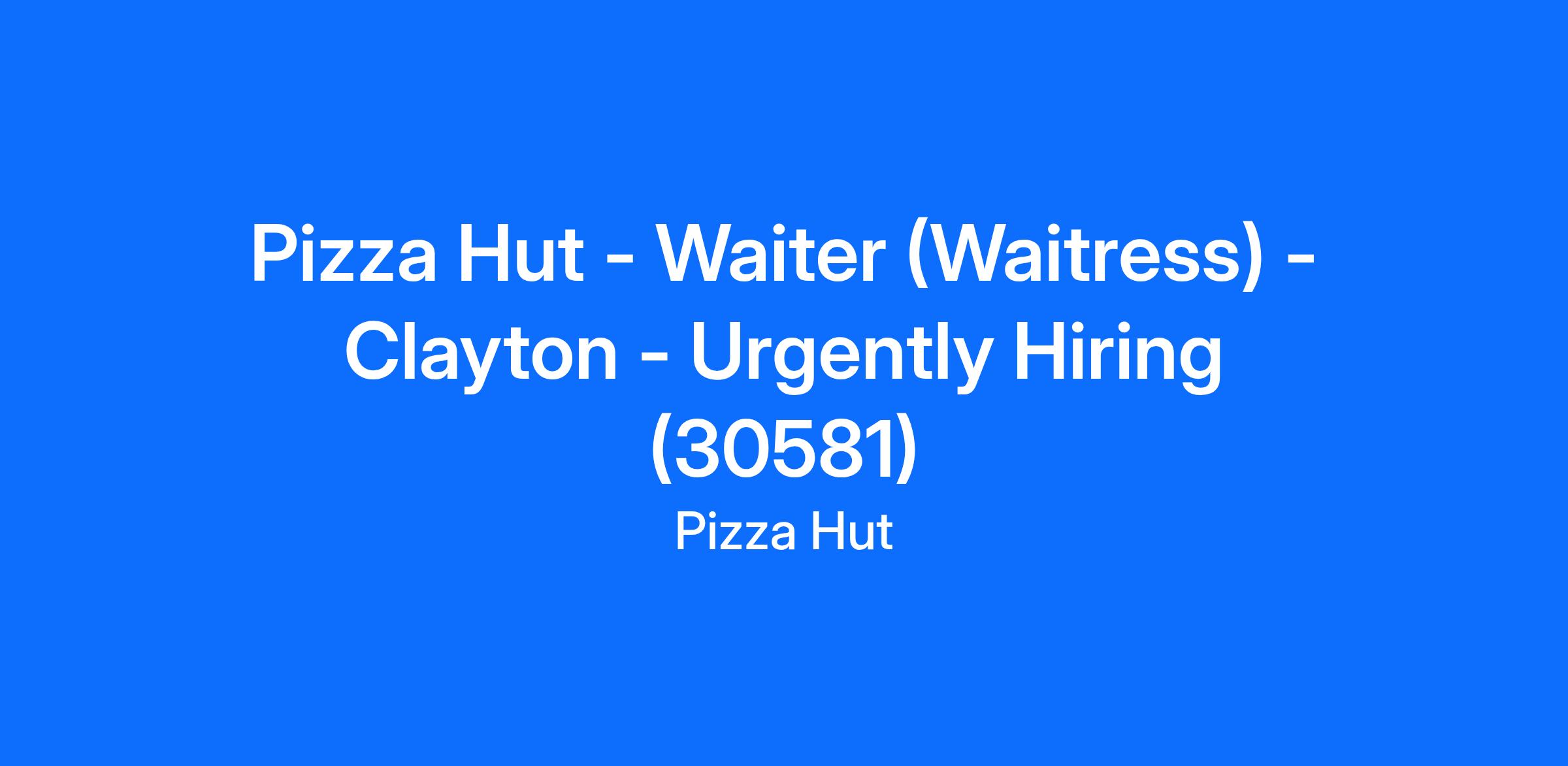 Pizza Hut - Waiter (Waitress) - Clayton - Urgently Hiring (30581)