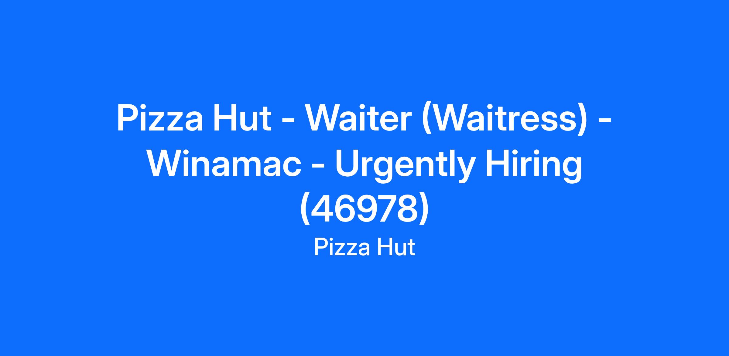 Pizza Hut - Waiter (Waitress) - Winamac - Urgently Hiring (46978)
