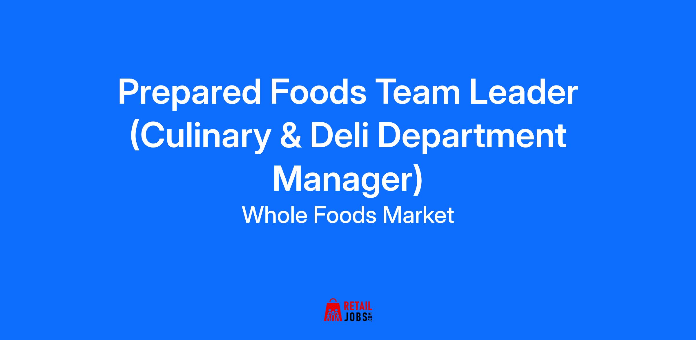 Prepared Foods Team Leader (Culinary & Deli Department Manager) Join to apply for the Prepared Foods Team Leader (Culinary & Deli Department Manager) role at Whole Foods Market Prepared Foods Team Leader (Culinary & Deli Department Manager) 1 day ago Be among the first 25 applicants Join to apply for the Prepared Foods Team Leader (Culinary & Deli Department Manager) role at Whole Foods Market This range is provided by Whole Foods Market. Your actual pay will be based on your skills and experience — talk with your recruiter to learn more. Base pay range $26.10/hr - $43.07/hr Provides overall leadership to the Prepared Foods team. Responsible for all aspects of daily operations including profitability, expense control, buying, merchandising, labor, regulatory compliance and special projects as assigned. Accountable for Team Member hiring, development, corrective actions and separations. All Whole Foods Market Retail jobs require ensuring a positive company image by providing courteous, friendly, and efficient service to customers and Team Members at all times. All positions must be performed in accordance with team and store Standard Operating Procedures. Further, Team Members must be prepared and able to perform the duties inherent in other Team Member job descriptions. All positions must strive to support WFM core values and goals, promote national, regional, and store programs and initiatives, and ensure adherence to all applicable health and safety regulations including Food Safety and regulatory duties required in the department. Job Responsibilities Holds ATLs, supervisors and Team Members accountable for delivering outstanding customer service. Builds a positive work environment of outstanding teamwork, mutual respect and exceptional morale. Makes hiring and separation decisions. Accountable for monitoring and achieving sales, purchasing, and labor targets. Maintains proper product assortment, merchandising, and inventory control. Establishes and maintains collaborative and productive working relationships with department leaders and with vendors. Sustains exceptional level of knowledge / awareness of relevant competitors and industry trends. Sets and achieves the highest standards of retail execution. Fosters and encourages a positive environment of outstanding teamwork, mutual respect, and exceptional morale. Maintains awareness of customer flows and needs and directs Team Members as necessary to satisfy and delight customers; responds promptly to customer needs and questions. Selects, trains, develops, mentors, motivates, and counsels Team Members in a manner that sustains a high-performance team and minimizes turnover. Provides timely, thorough, and thoughtful performance evaluations. Consistently communicates and models WFM vision and goals. Job Skills Sustains exceptional level of knowledge and awareness of relevant competitors and industry trends. Advanced knowledge of products, buying, pricing, merchandising, and inventory management. Food safety certification. If not currently certified, will commit to completing certification within 6 months. Excellent interpersonal, motivational, team building, and customer relationship skills. Capable of teaching others in a positive and constructive manner. Product knowledge. Advanced knowledge of regulatory and safety policies and procedures. Proficient mathematical skills for assessing financial performance, monitoring profitability, and managing inventory. Demonstrated decision-making ability, leadership skills, and ability to prioritize and delegate. Proficiency with email, Microsoft Office, and operations-related applications. Experience 24 months retail experience including 12 months of team leadership experience. Physical Requirements/Working Conditions Must be able to lift 50 pounds. In an 8-hour work day: standing/walking 6-8 hours. Hand use: single grasping, fine manipulation, pushing and pulling. Work requires the following motions: bending, twisting, squatting and reaching. Exposure to FDA approved cleaning chemicals. Exposure to temperatures: 90 degrees Fahrenheit. Ability to work in wet and dry conditions. Ability to work a flexible schedule including nights, weekends, and holidays as needed. Ability to use tools and equipment, including knives, box cutters, electric pallet jacks, and other heavy machinery. May require use of ladders. Note : The purpose of this document is to provide a general summary of essential responsibilities for the position and is not meant as an exhaustive list. This document does not reflect all job duties or requirements for every position . Requirements build as one progresses through the job levels, so any job duties required at a lower level may be required at the higher level in addition to the duties listed for that higher level. Duties, assignments, and other responsibilities may differ for similar positions based on business conditions, departmental or geographic location, and/or needs for the particular position. An individual must demonstrate successful performance in their current position before being considered for promotion. In addition, in order to promote into a higher-level position, a business need for the promotion must exist and the candidate must be considered the most qualified person for the new position. Completion of certain milestones such as obtaining an advanced degree or certification, time in current position, or developing skills to perform at the higher-level role do not guarantee a promotion. The wage range for this position is $26.10-$43.07 Hourly, commensurate with experience. Whole Foods Market offers "Whole Benefits". Whole Benefits may include health insurance, retirement plan benefits, eligibility for a store discount, paid time off and access to other benefit programs. Eligibility for Whole Benefits is determined under the terms of the applicable Whole Benefits plan at a person’s date of hire. For additional information, visit our Whole Foods Market Car