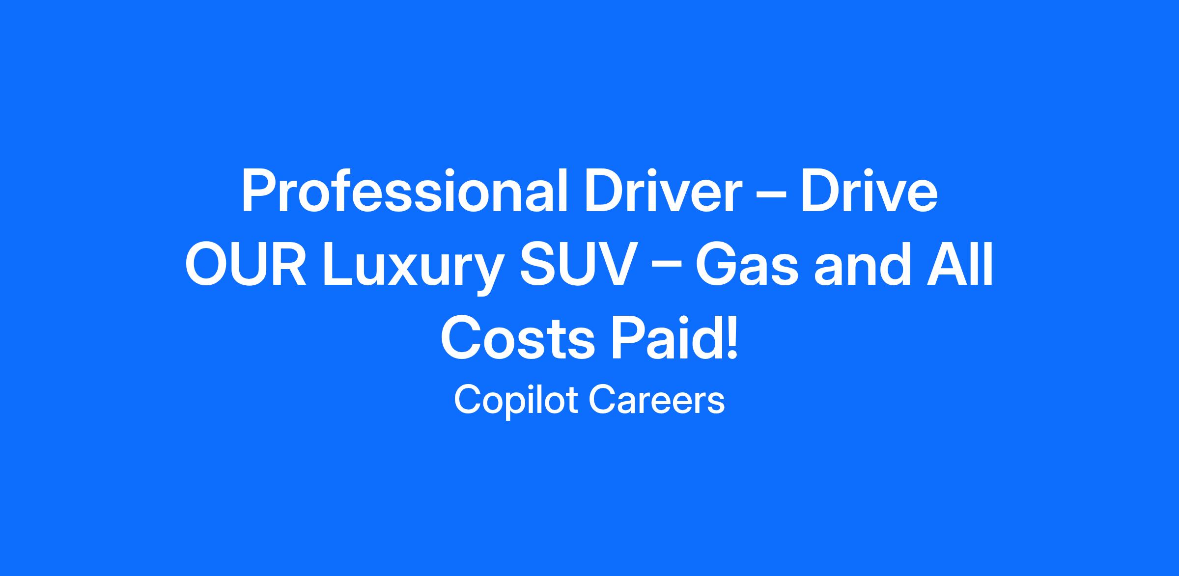 Professional Driver – Drive OUR Luxury SUV – Gas and All Costs Paid!