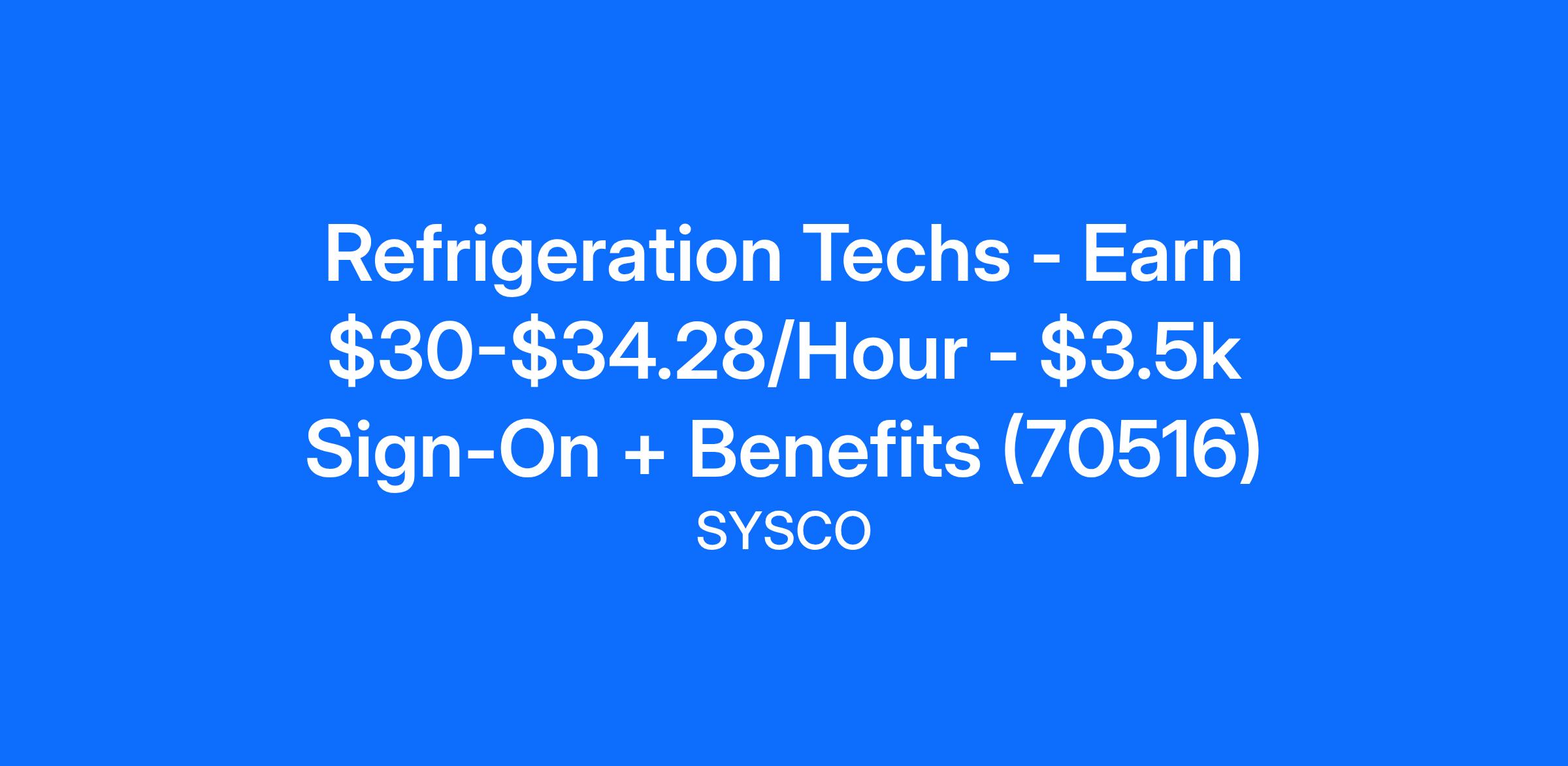 Refrigeration Techs - Earn $30-$34.28/Hour - $3.5k Sign-On + Benefits (70516)