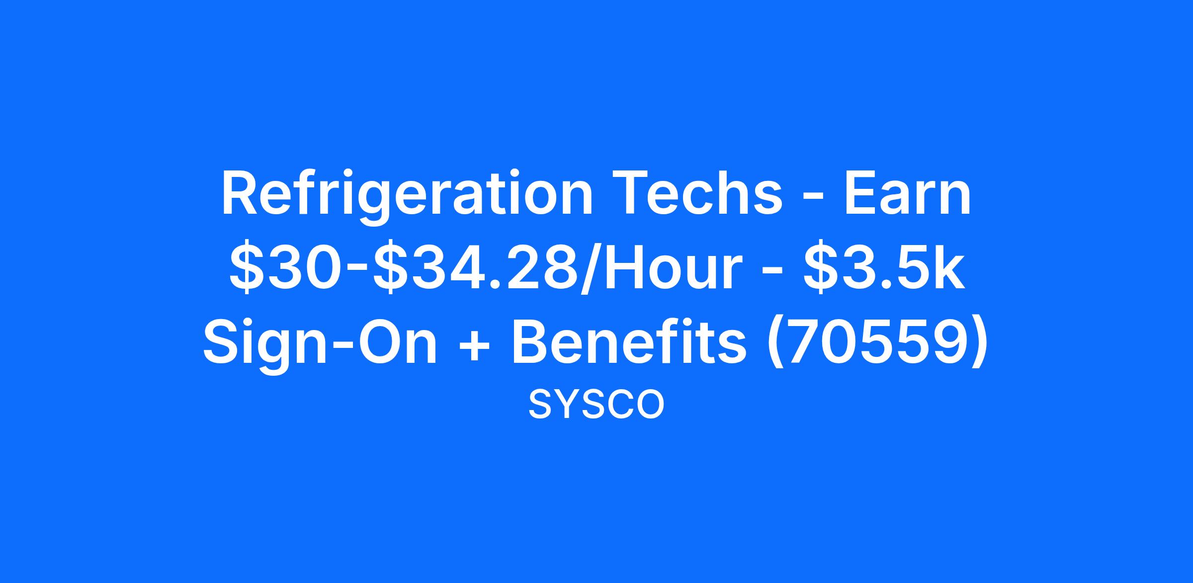 Sysco is Now Hiring Refrigeration Techs Lvl. II in Broussard, LA!