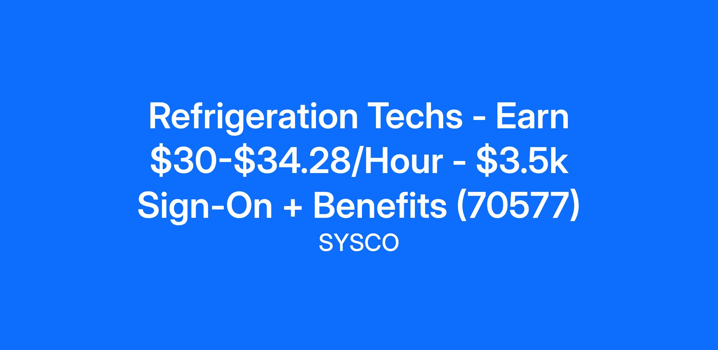 Refrigeration Techs - Earn $30-$34.28/Hour - $3.5k Sign-On + Benefits (70577)
