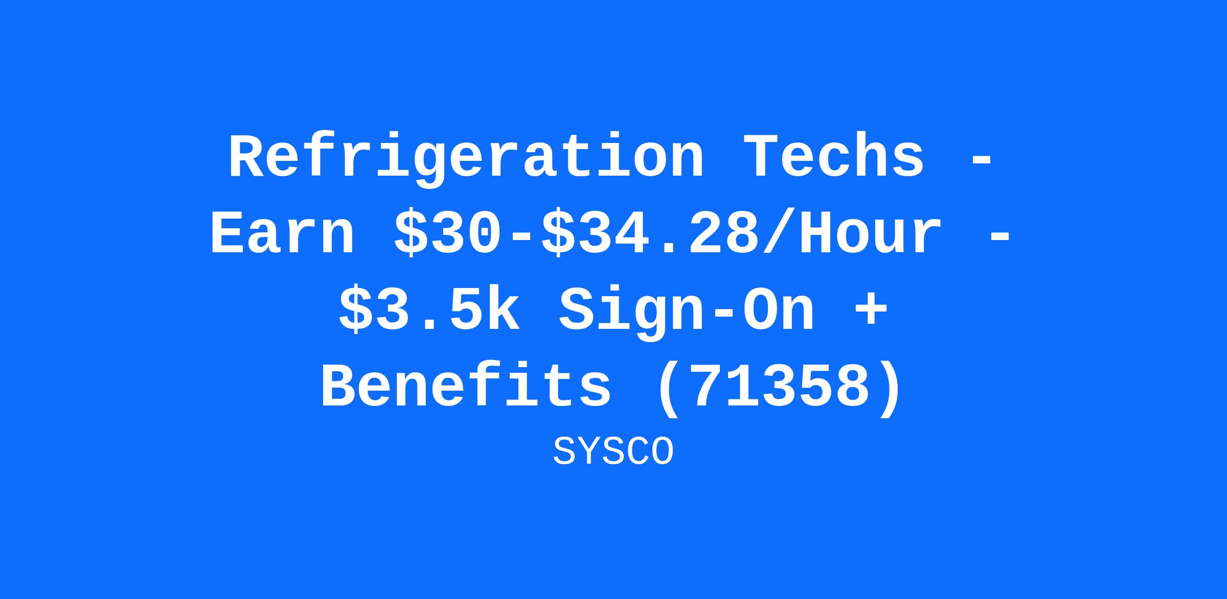 Refrigeration Techs - Earn $30-$34.28/Hour - $3.5k Sign-On + Benefits (71358)
