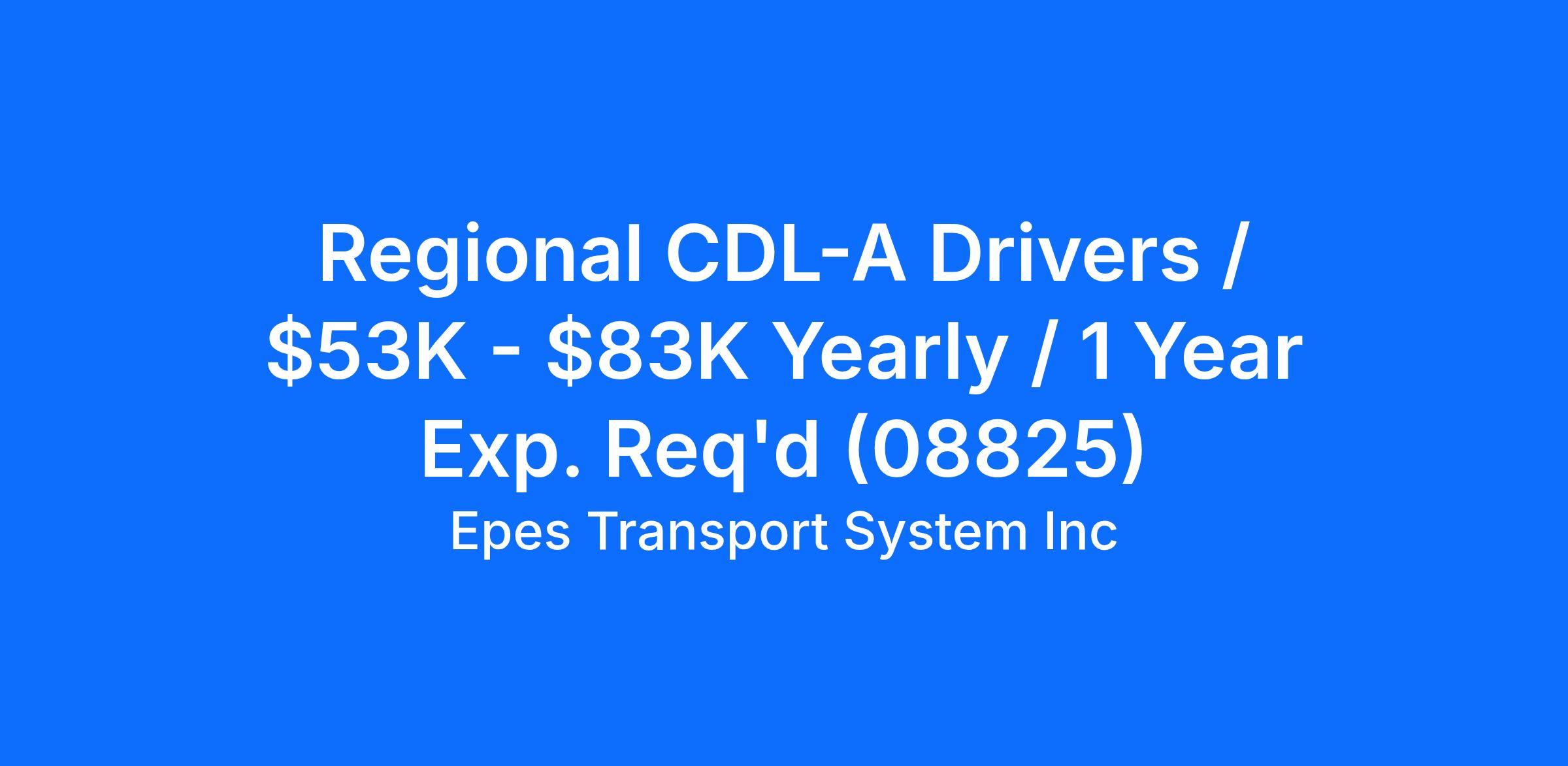 Regional CDL-A Drivers / $53K - $83K Yearly / 1 Year Exp. Req'd (08825)