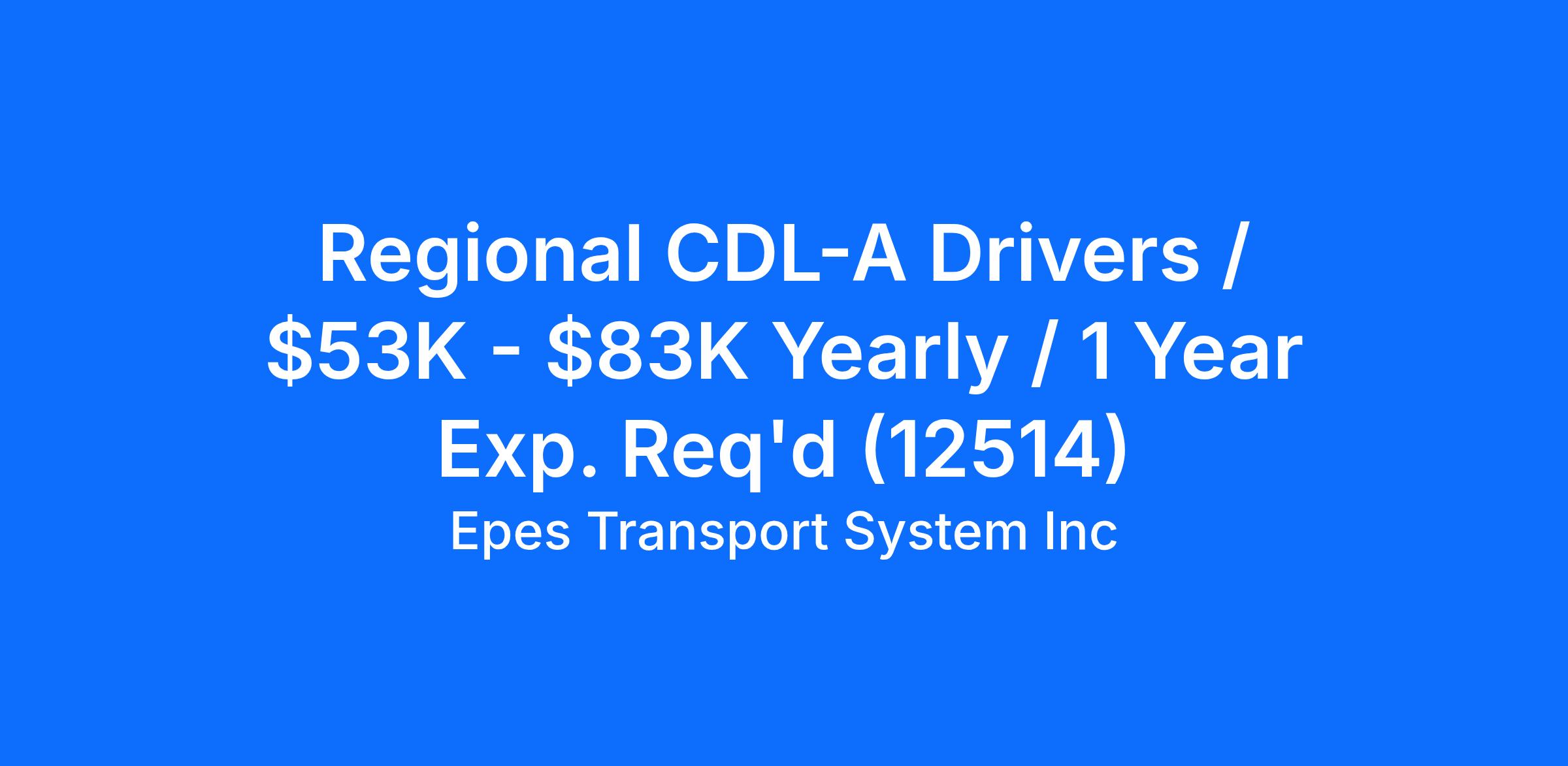 Regional CDL-A Drivers / $53K - $83K Yearly / 1 Year Exp. Req'd (12514)