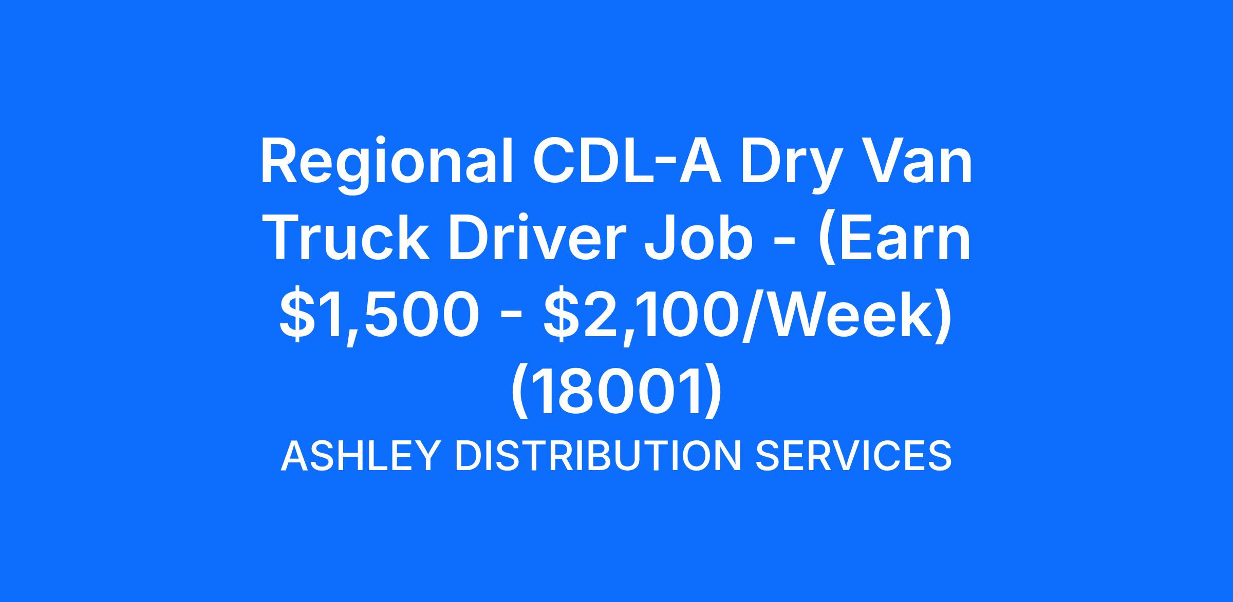 Regional CDL-A Dry Van Truck Driver Job - (Earn $1,500 - $2,100/Week) (18001)