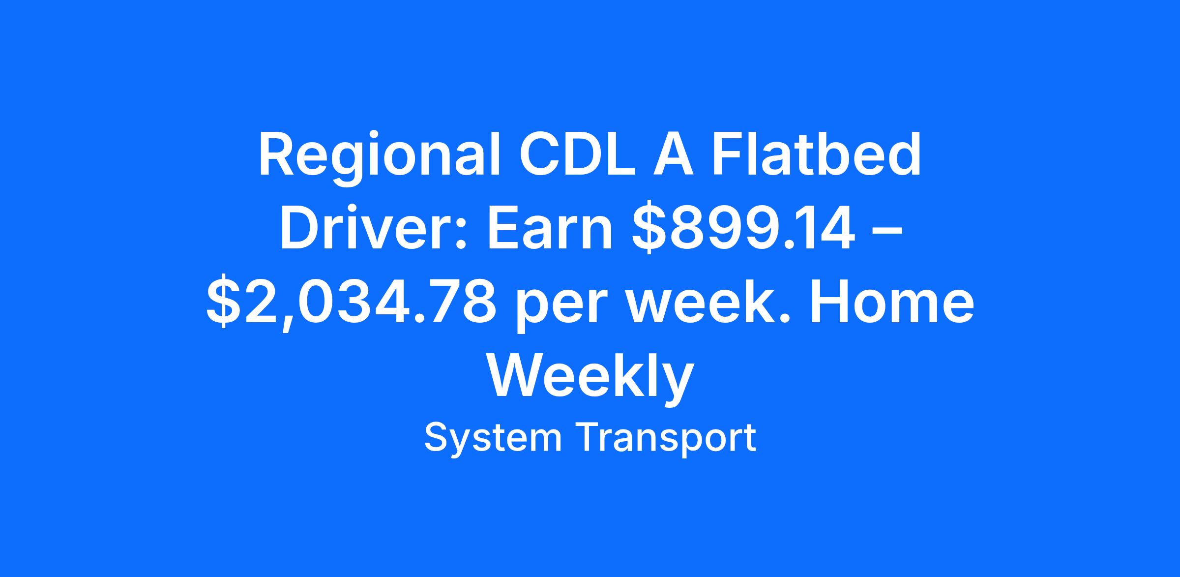 Regional CDL A Flatbed Driver: Earn $899.14 – $2,034.78 per week. Home Weekly