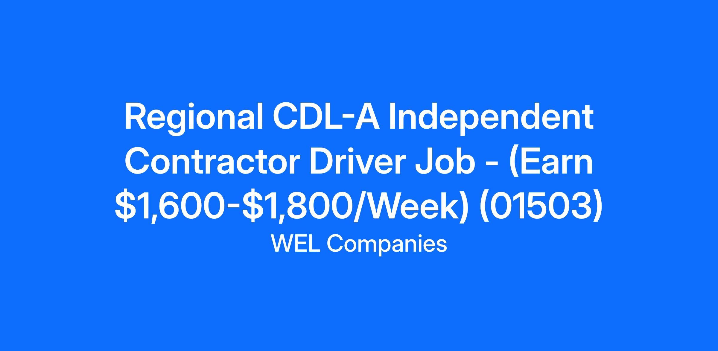 Regional CDL-A Independent Contractor Driver Job - (Earn $1,600-$1,800/Week) (01503)