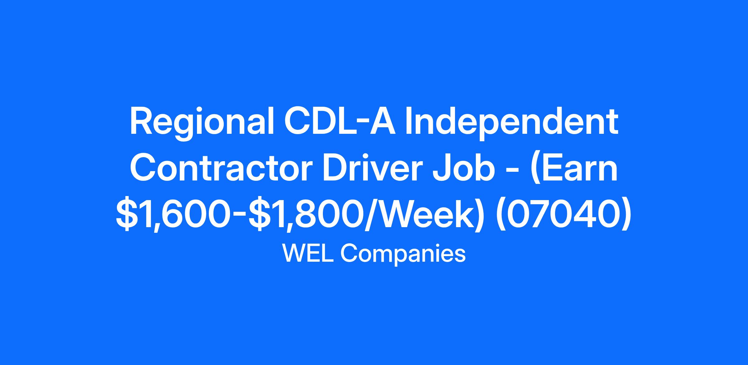 Regional CDL-A Independent Contractor Driver Job - (Earn $1,600-$1,800/Week) (07040)