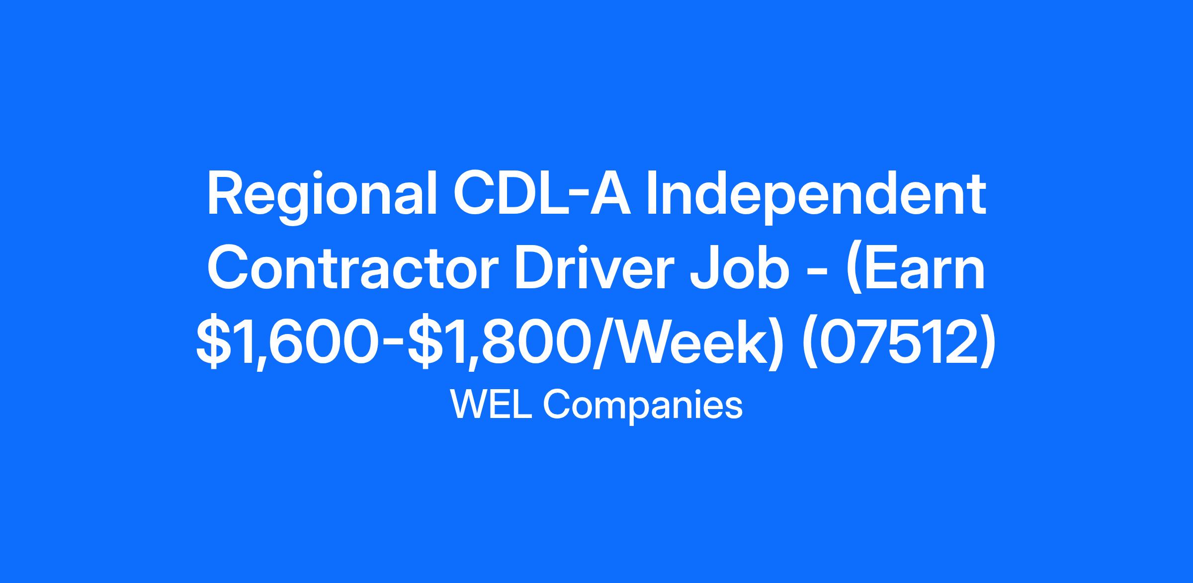 Regional CDL-A Independent Contractor Driver Job - (Earn $1,600-$1,800/Week) (07512)