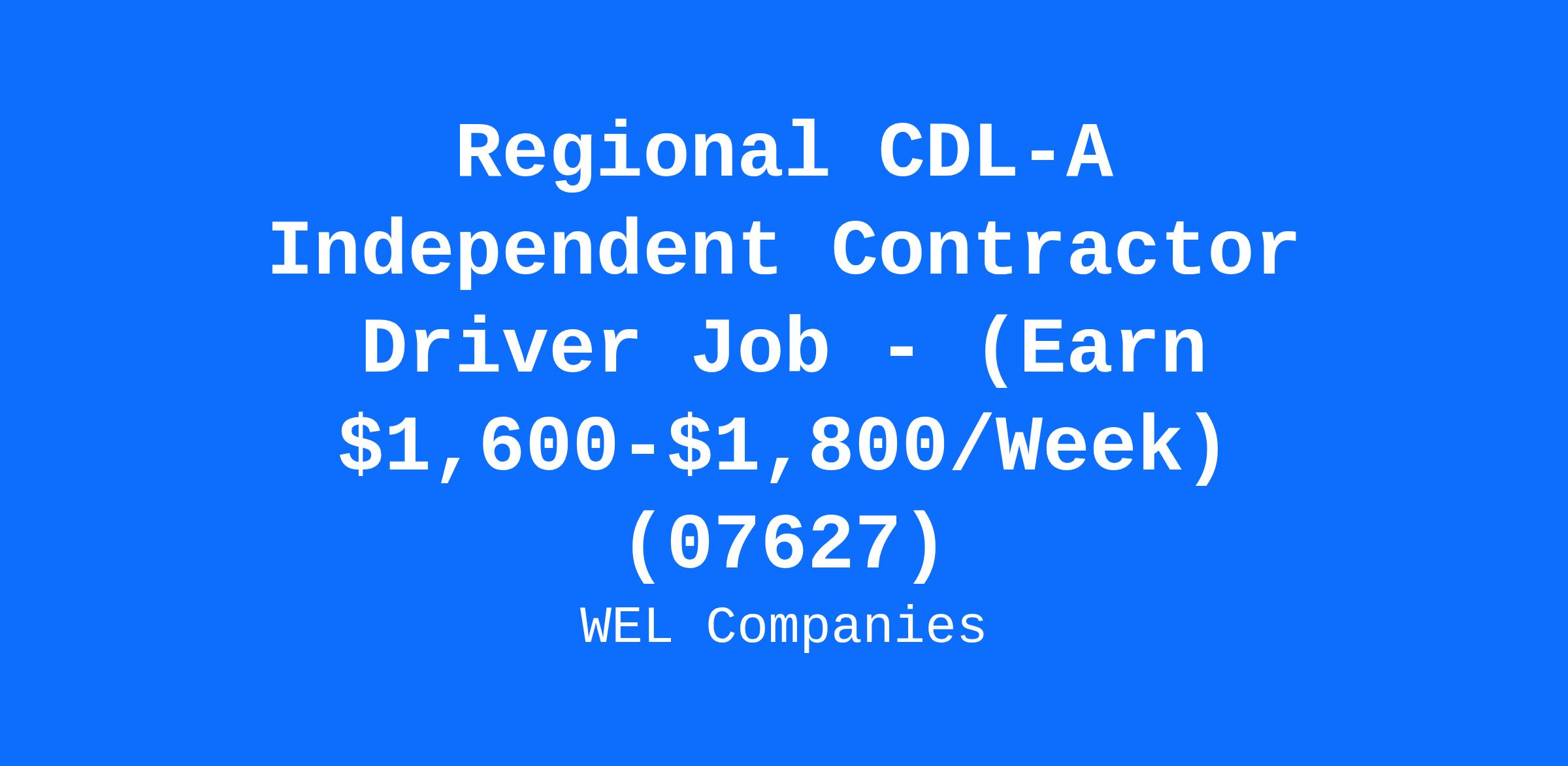 Regional CDL-A Independent Contractor Driver Job - (Earn $1,600-$1,800/Week) (07627)