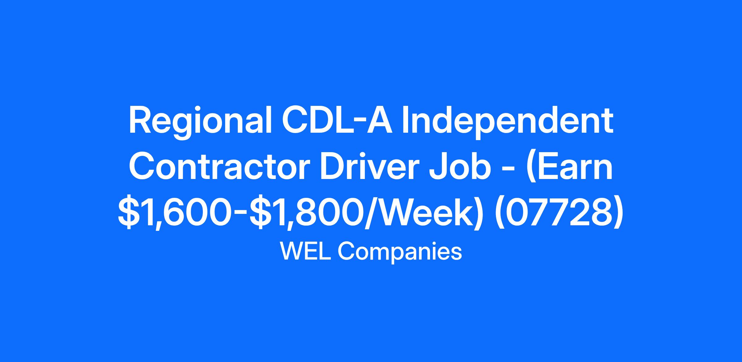 Regional CDL-A Independent Contractor Driver Job - (Earn $1,600-$1,800/Week) (07728)