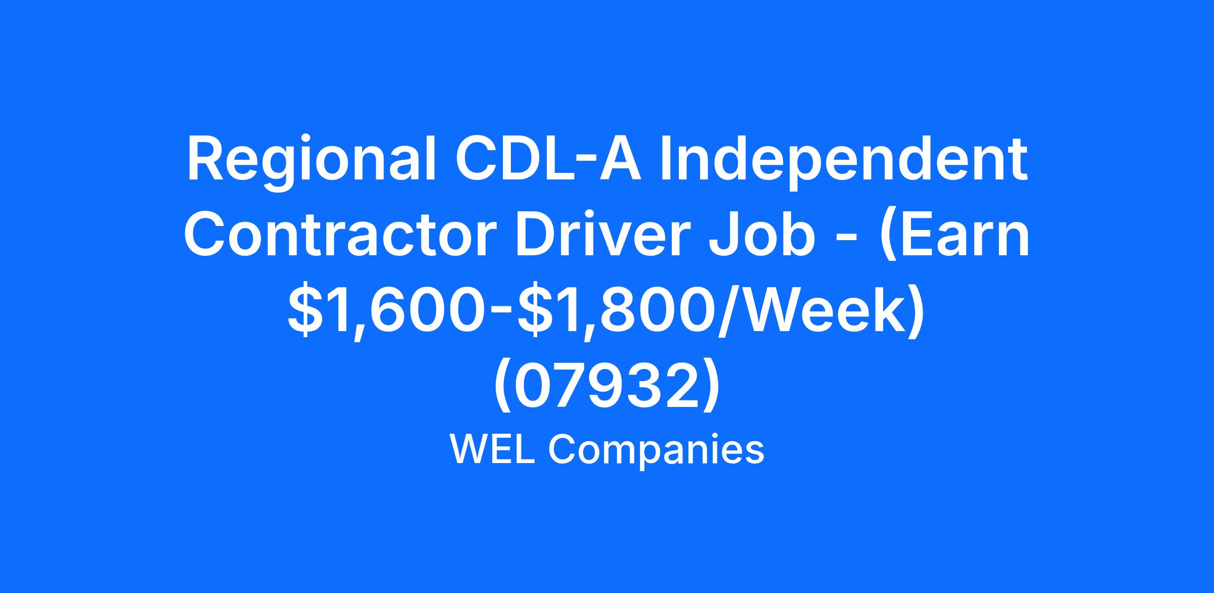 Regional CDL-A Independent Contractor Driver Job - (Earn $1,600-$1,800/Week) (07932)