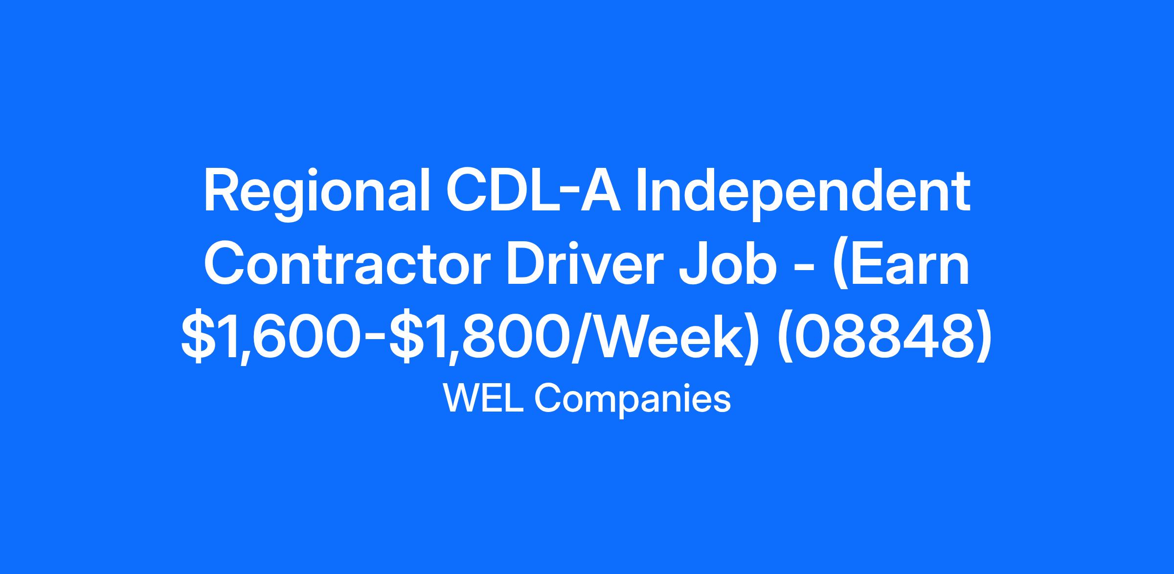 Regional CDL-A Independent Contractor Driver Job - (Earn $1,600-$1,800/Week) (08848)