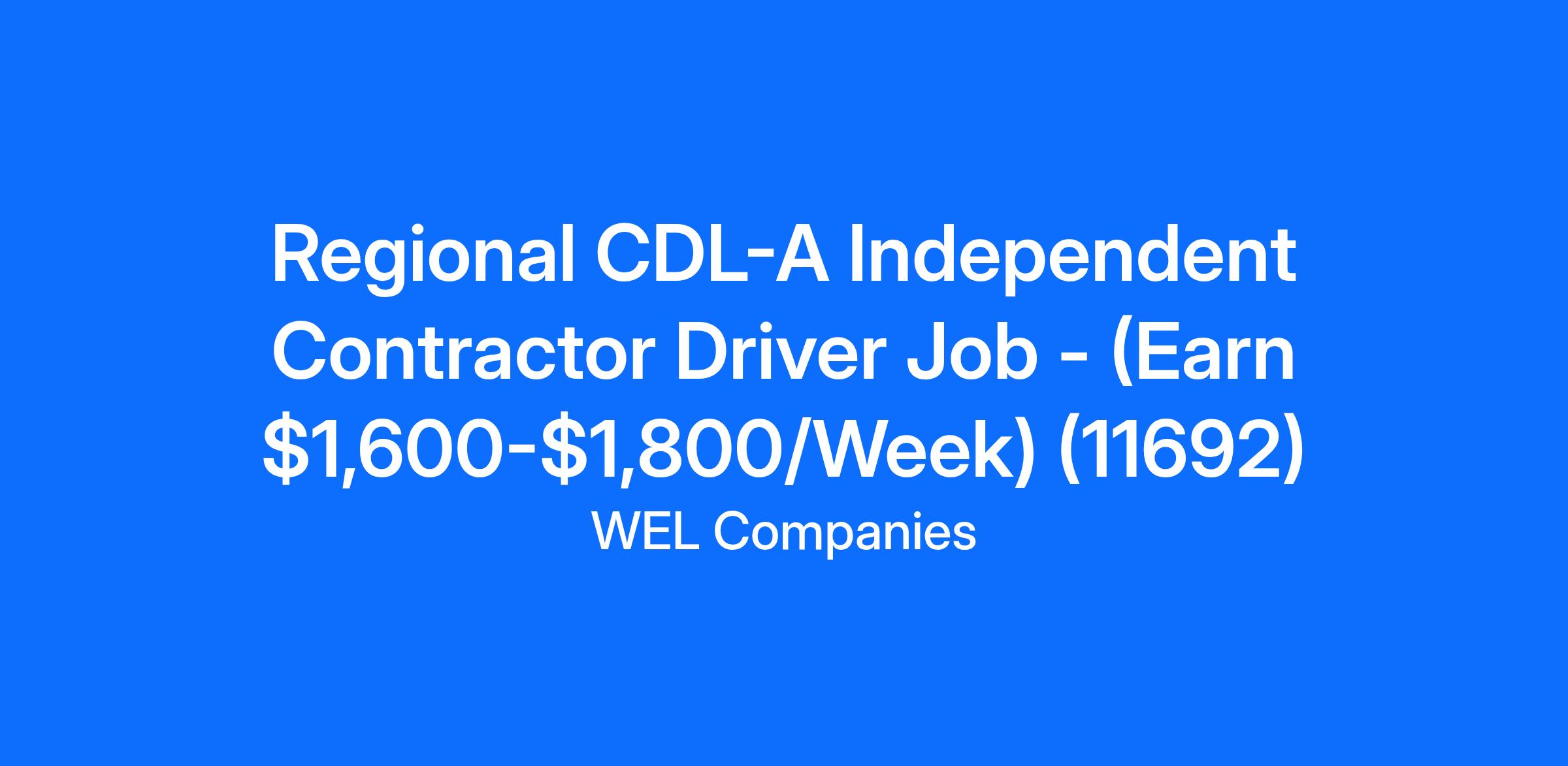 Regional CDL-A Independent Contractor Driver Job - (Earn $1,600-$1,800/Week) (11692)