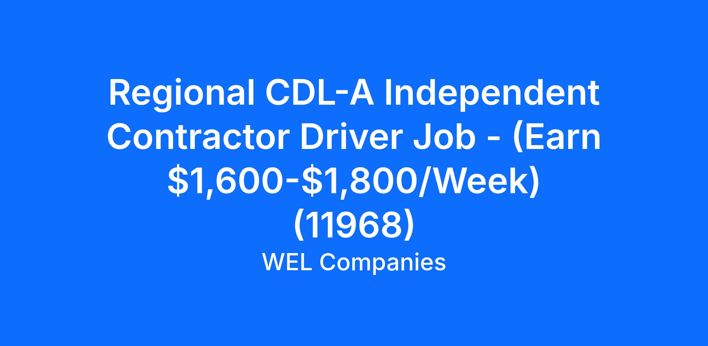 Regional CDL-A Independent Contractor Driver Job - (Earn $1,600-$1,800/Week) (11968)