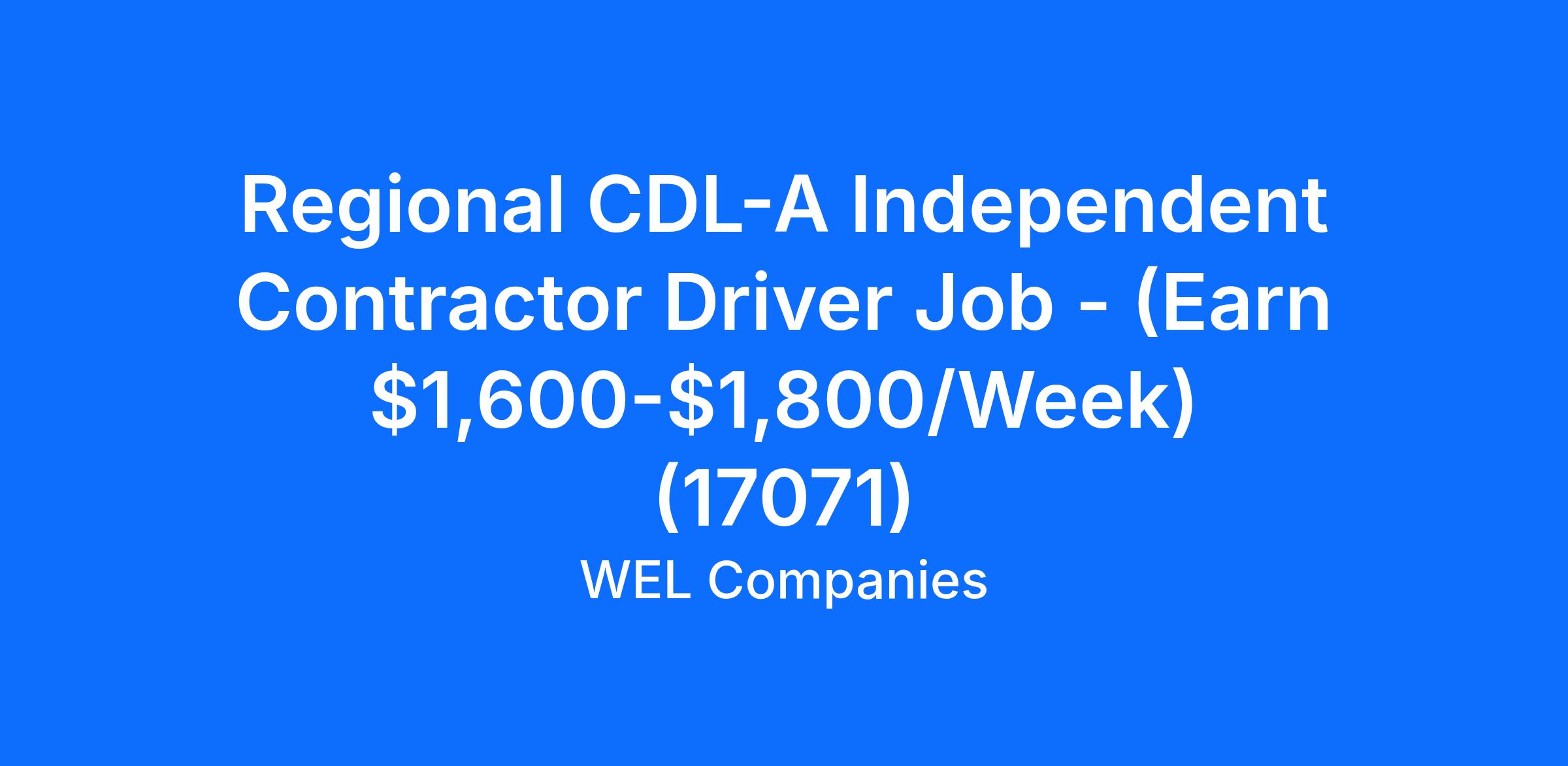 Regional CDL-A Independent Contractor Driver Job - (Earn $1,600-$1,800/Week) (17071)