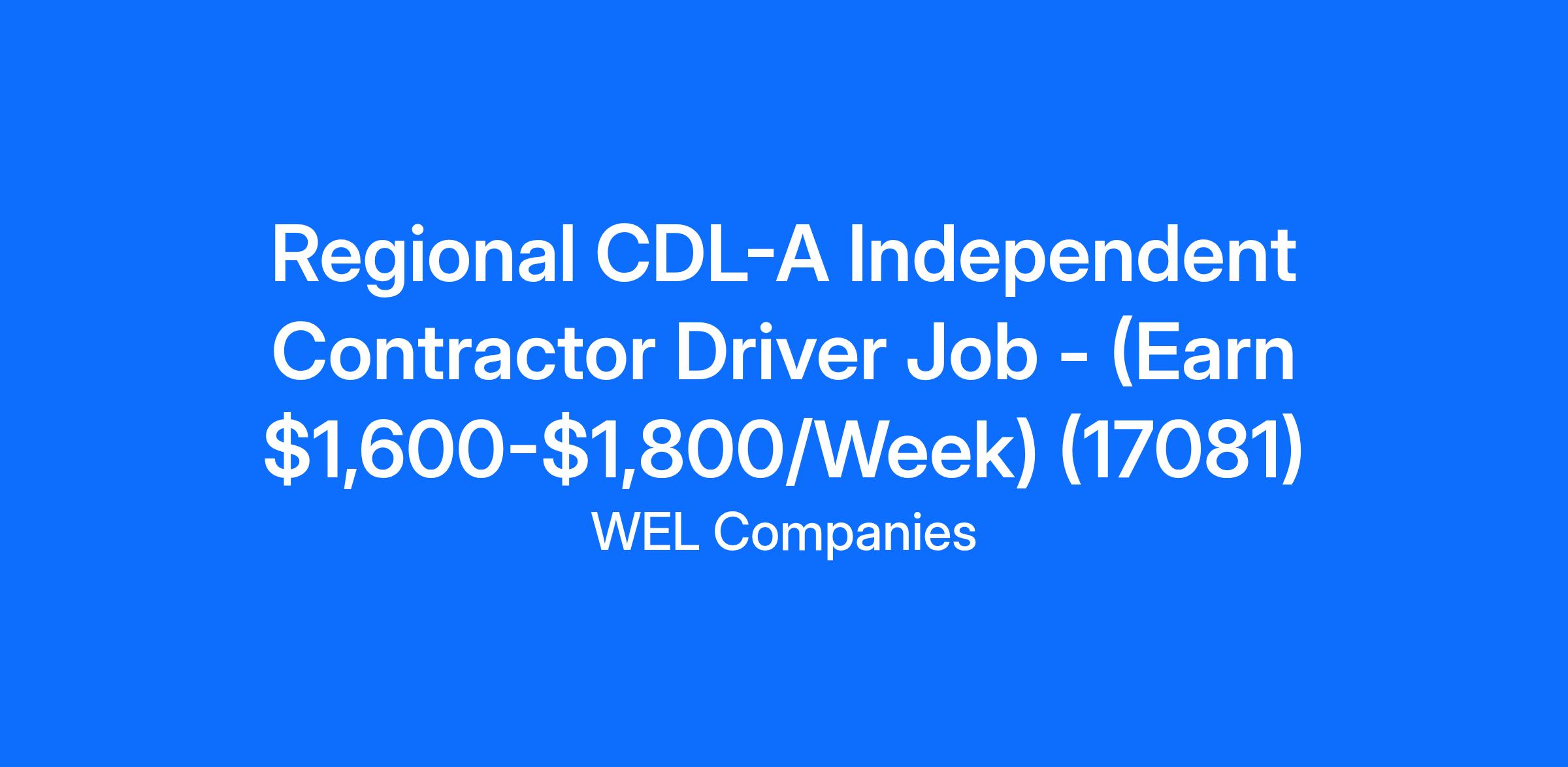 Regional CDL-A Independent Contractor Driver Job - (Earn $1,600-$1,800/Week) (17081)