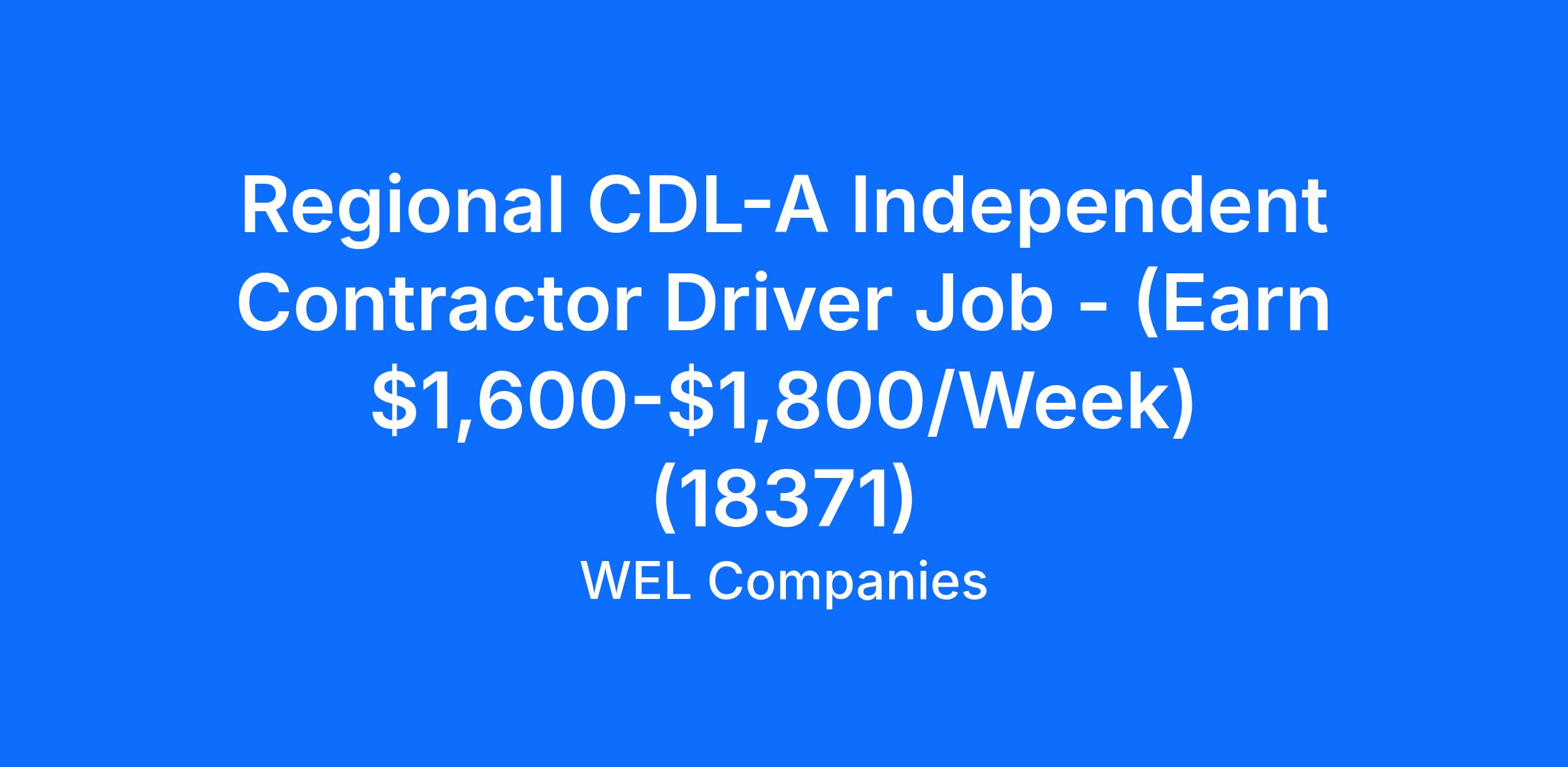 Regional CDL-A Independent Contractor Driver Job - (Earn $1,600-$1,800/Week) (18371)
