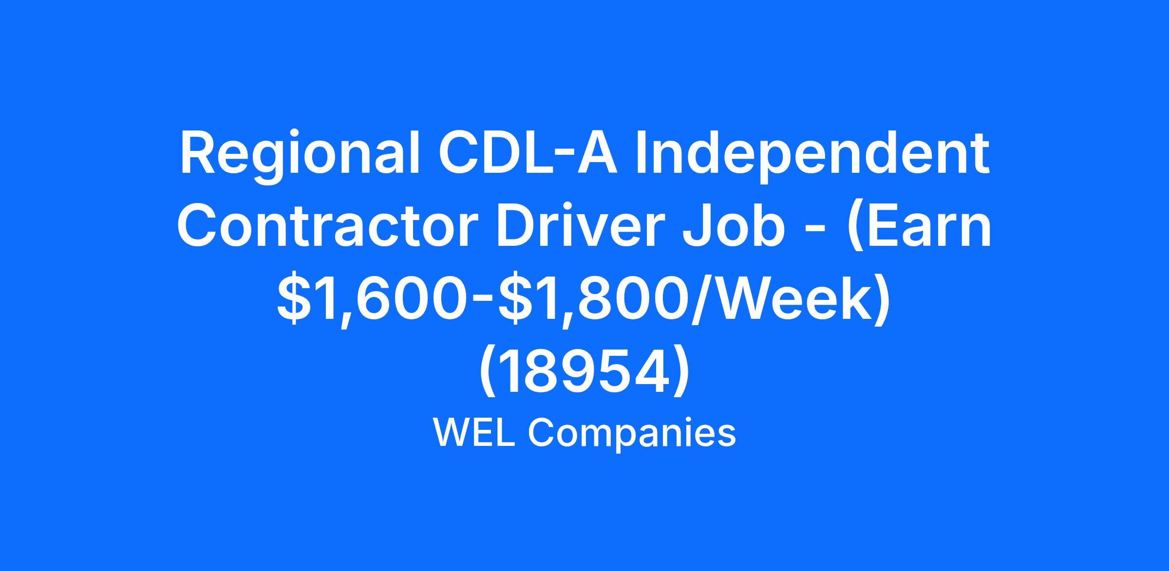 Regional CDL-A Independent Contractor Driver Job - (Earn $1,600-$1,800/Week) (18954)