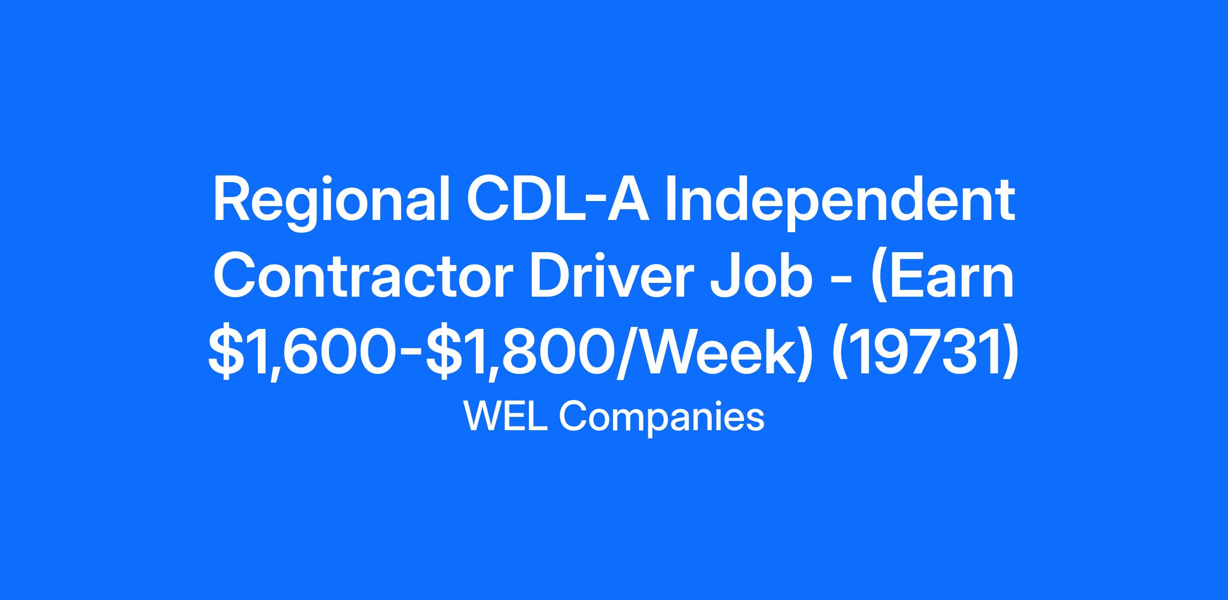 Regional CDL-A Independent Contractor Driver Job - (Earn $1,600-$1,800/Week) (19731)