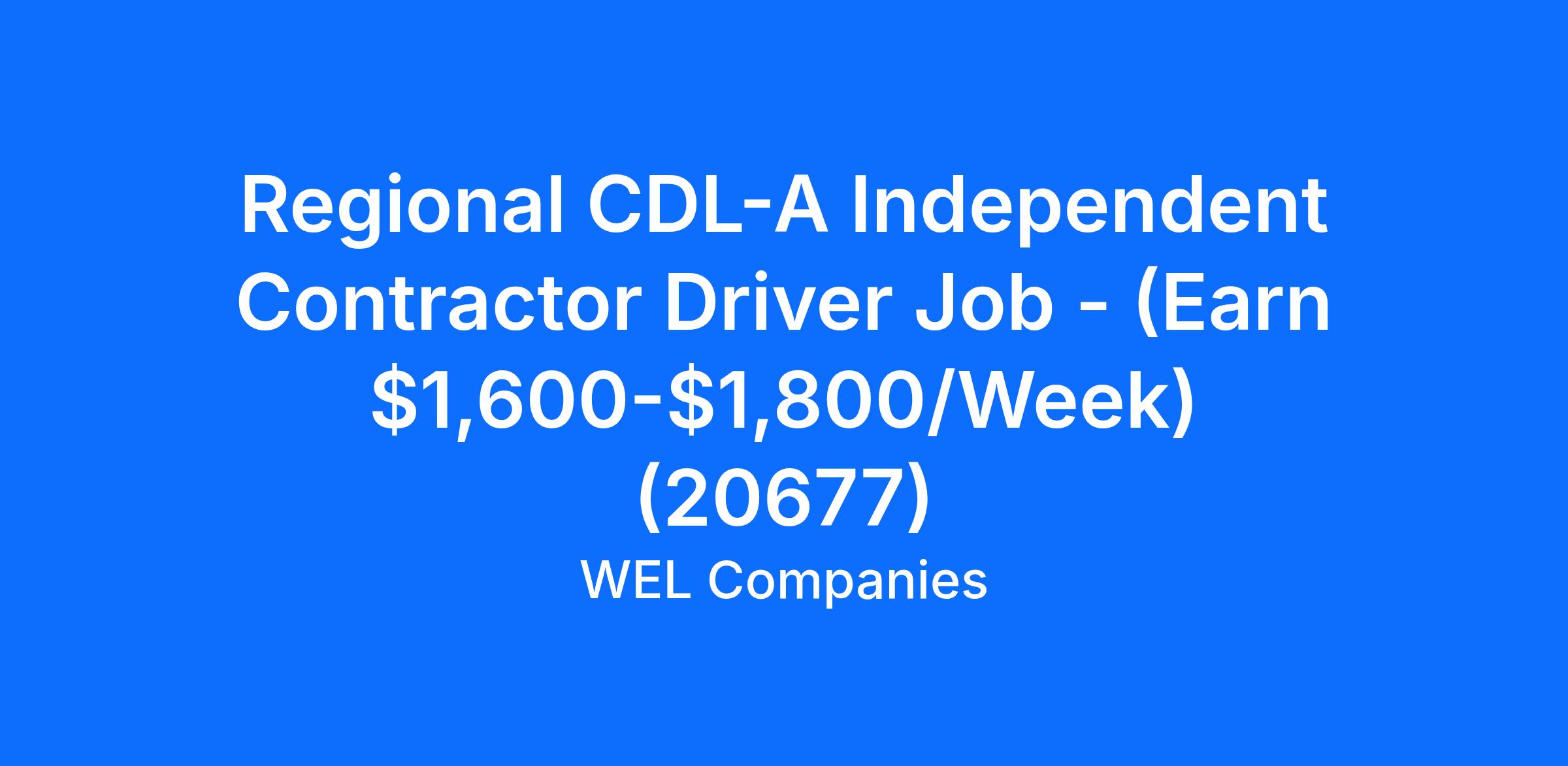 Regional CDL-A Independent Contractor Driver Job - (Earn $1,600-$1,800/Week) (20677)