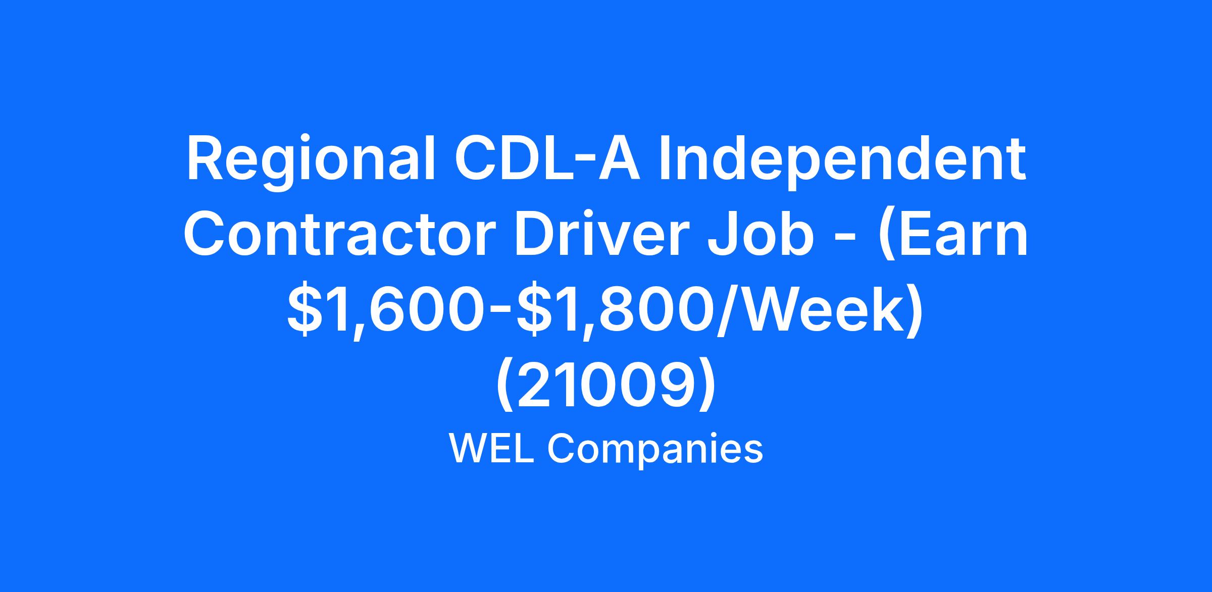Regional CDL-A Independent Contractor Driver Job - (Earn $1,600-$1,800/Week) (21009)