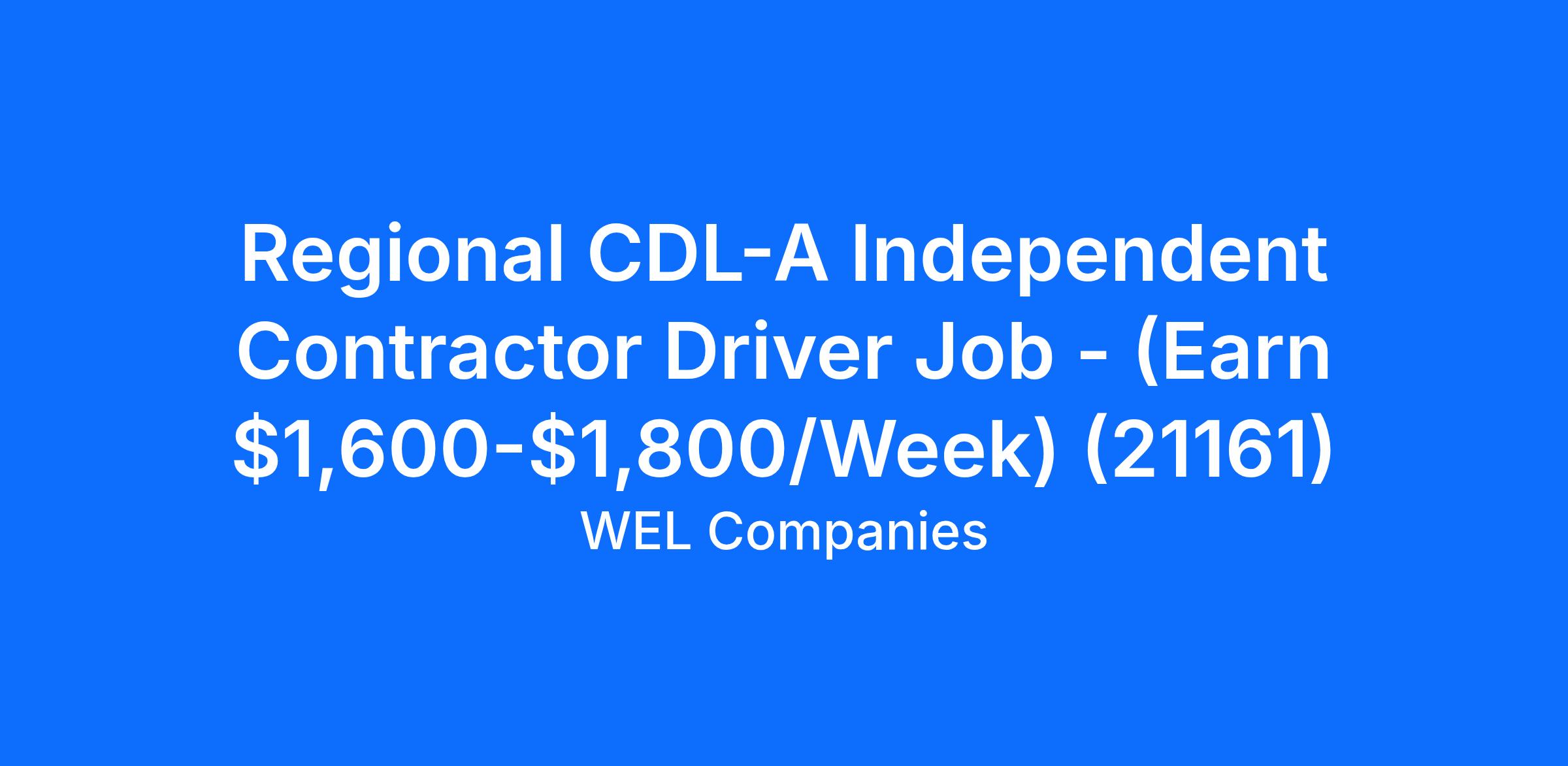 Regional CDL-A Independent Contractor Driver Job - (Earn $1,600-$1,800/Week) (21161)