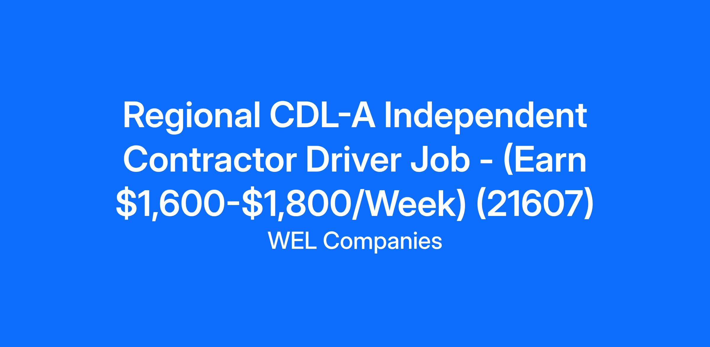 Regional CDL-A Independent Contractor Driver Job - (Earn $1,600-$1,800/Week) (21607)
