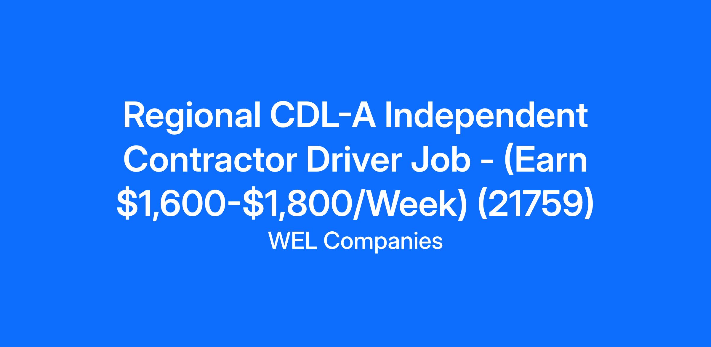 Regional CDL-A Independent Contractor Driver Job - (Earn $1,600-$1,800/Week) (21759)